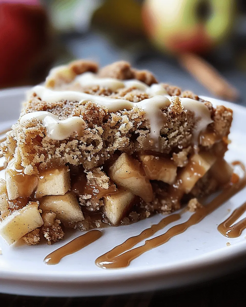 Experience the delightful combination of flavors in this Apple Crumb Cake topped with a rich Cinnamon Apple Drizzle.