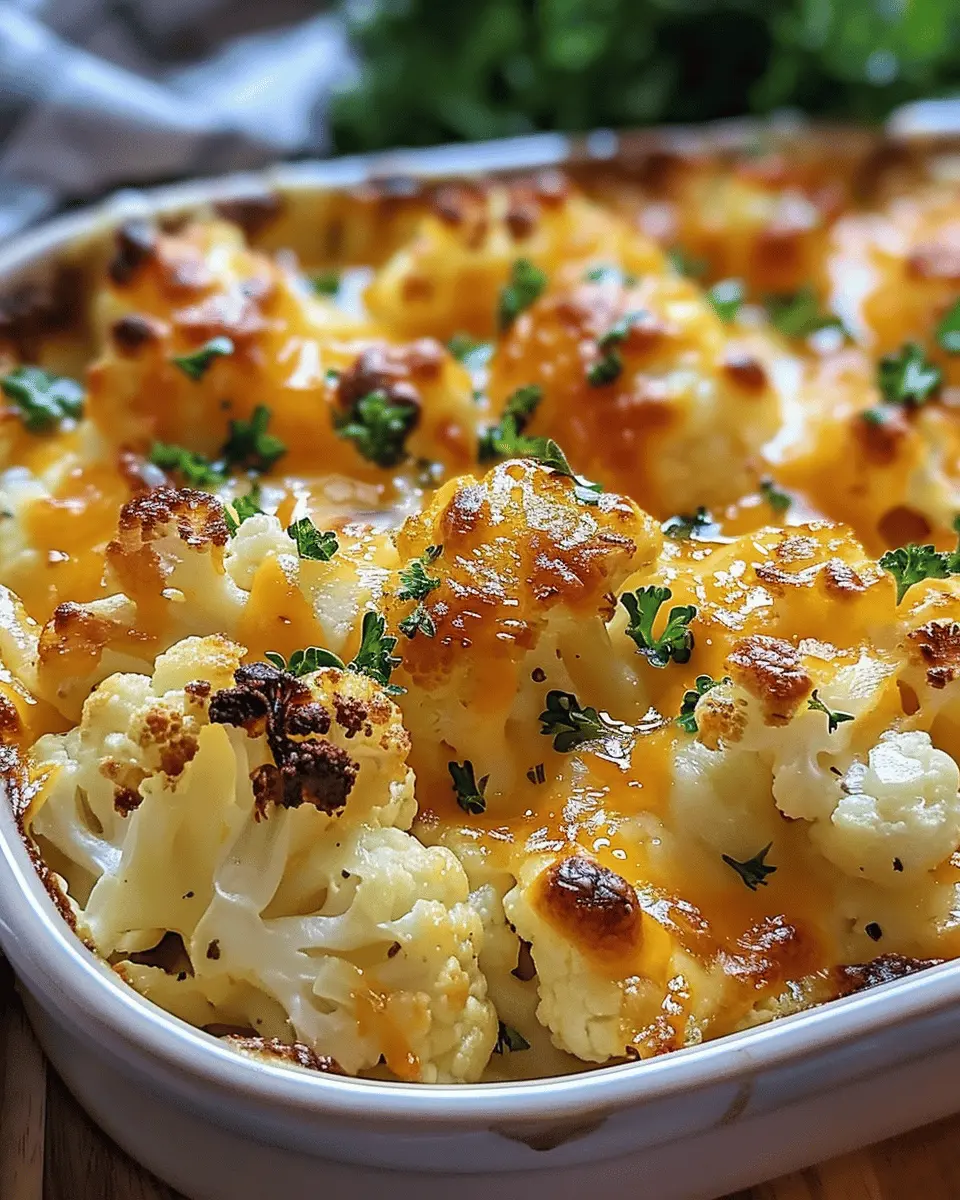 Keywords: Baked Cheddar Cauliflower, Comfort Food, Cheesy Dish