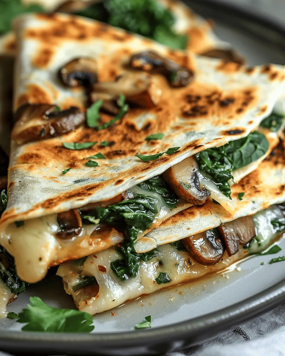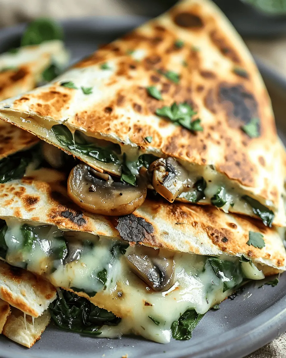 Nutritious Ingredients: Packed with spinach, mushrooms, and a variety of spices, these quesadillas provide a wealth of vitamins and minerals. Spinach is rich in iron and vitamins A and C, while mushrooms offer a low-calorie source of fiber and antioxidants. According to a study from the Journal of Nutrition, consuming nutrient-dense foods like these can help maintain good health and promote weight management.