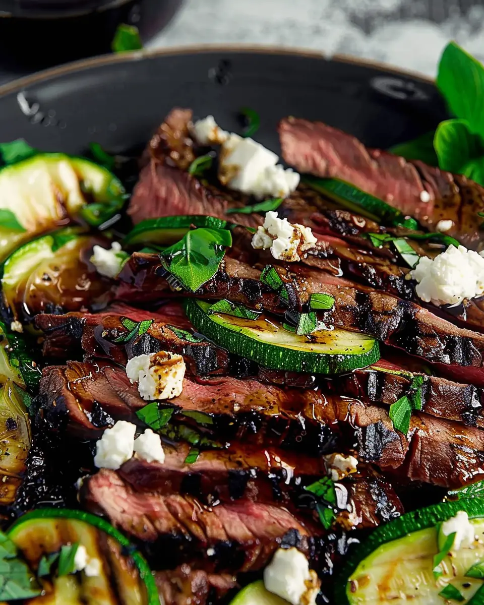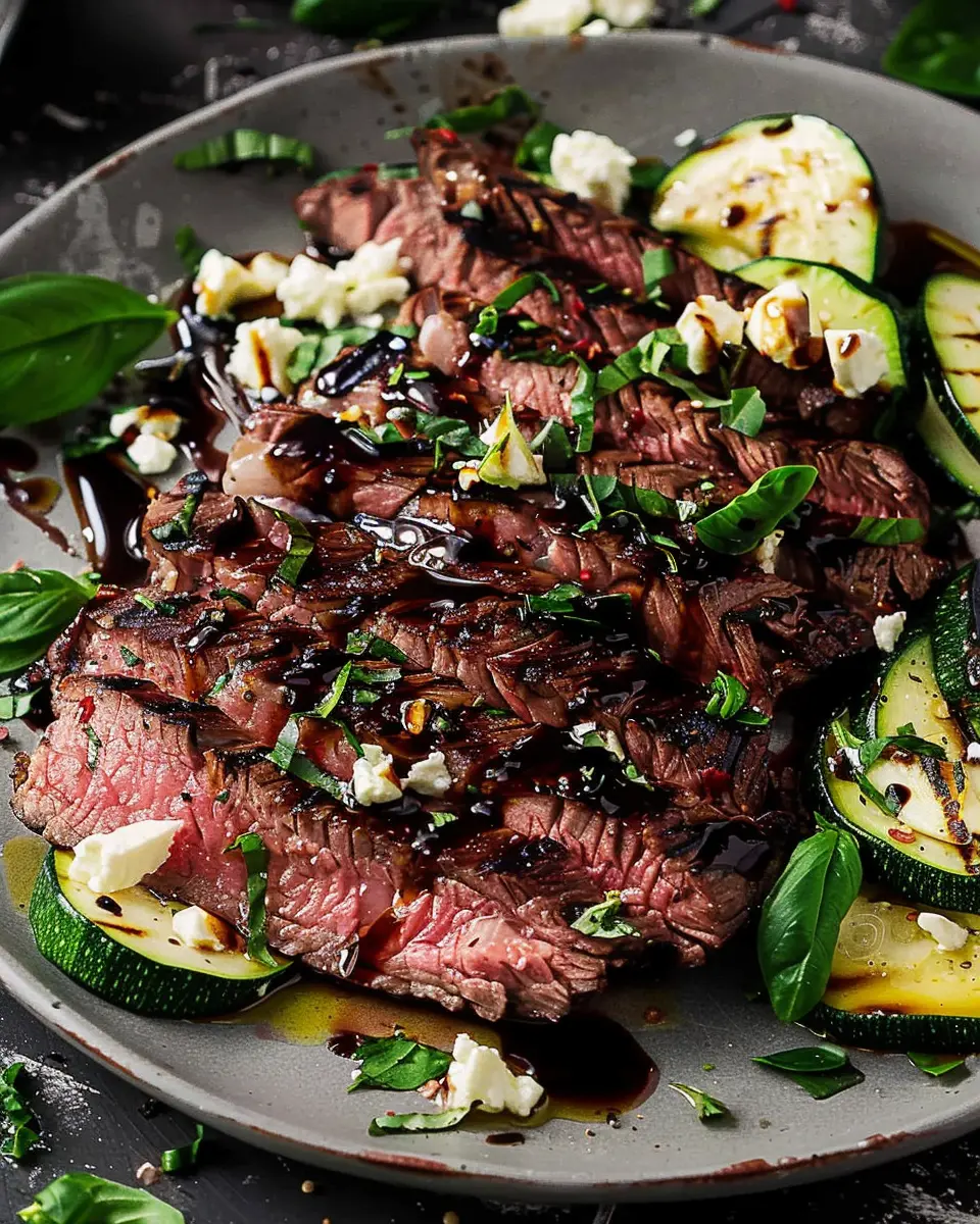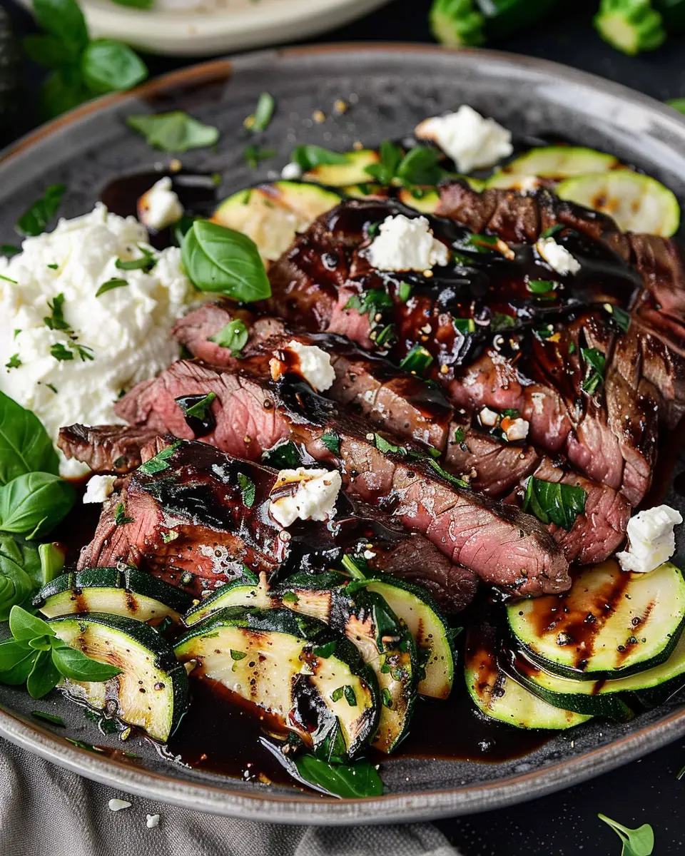 Balsamic Flank Steak with Zucchini and Whipped Feta is a delightful dish that combines savory flavors with nutritious vegetables.