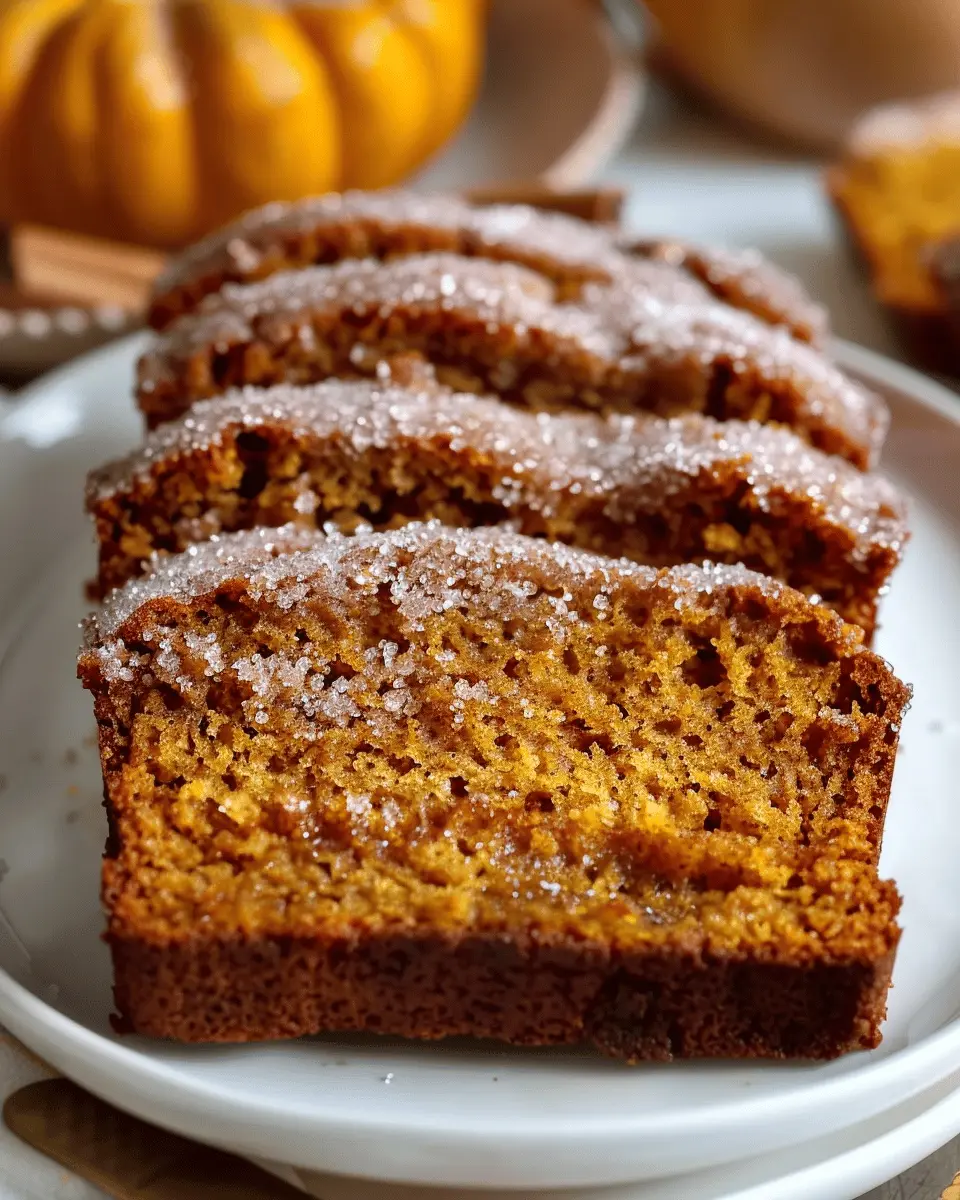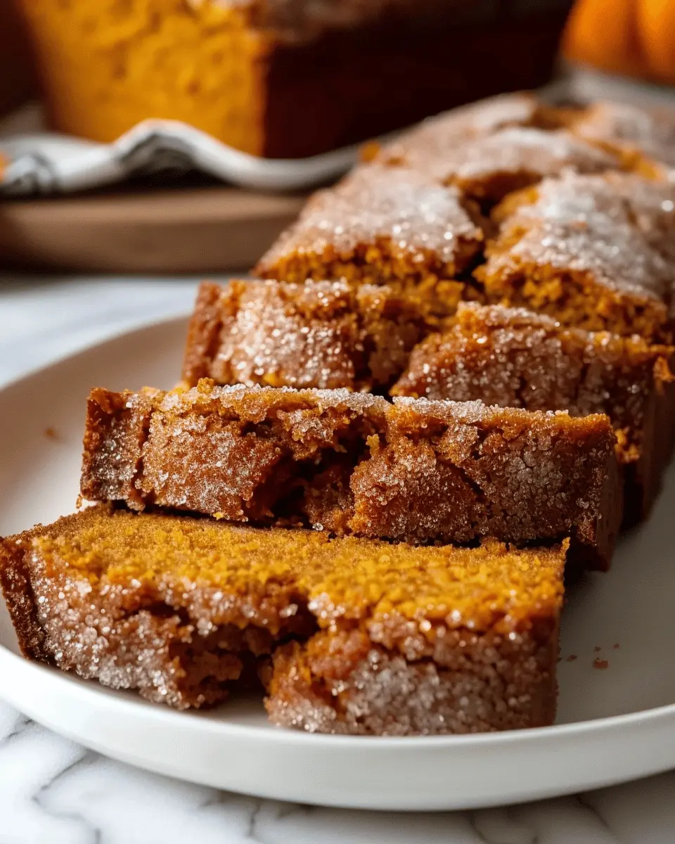 A warm and delicious pumpkin bread recipe with a cinnamon sugar topping, perfect for cozy fall mornings.