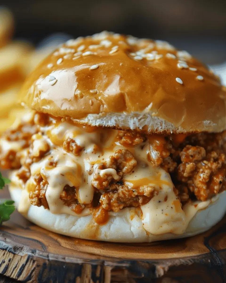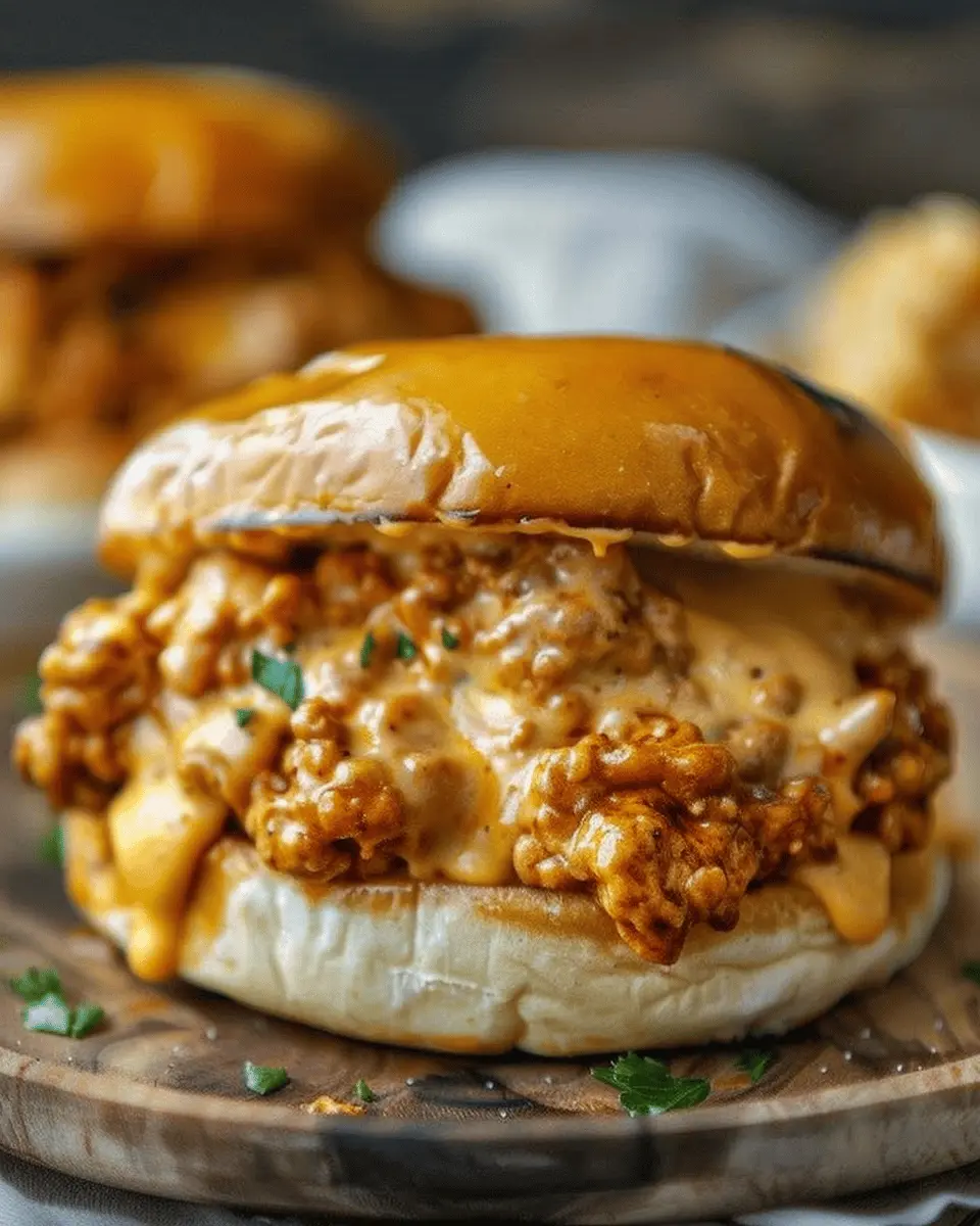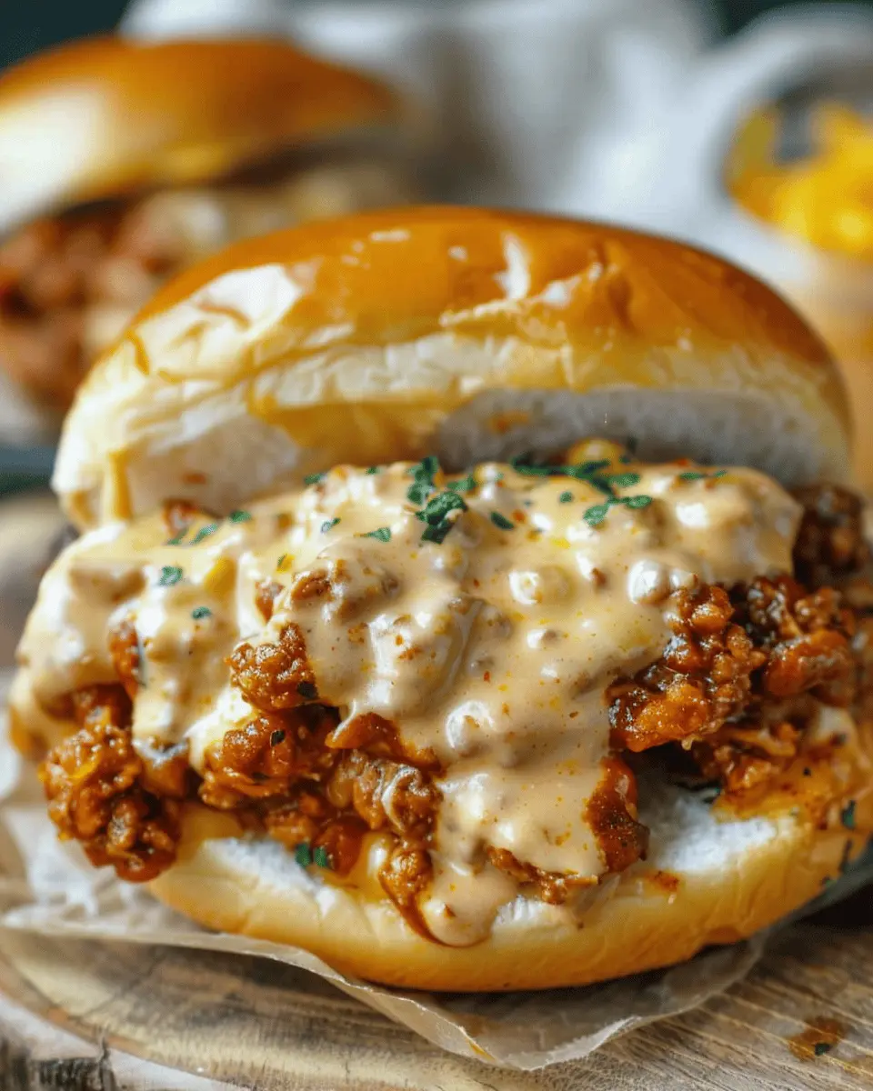PrintCajun Chicken Sloppy Joes with Creamy Cheese Sauce: A Juicy Twist