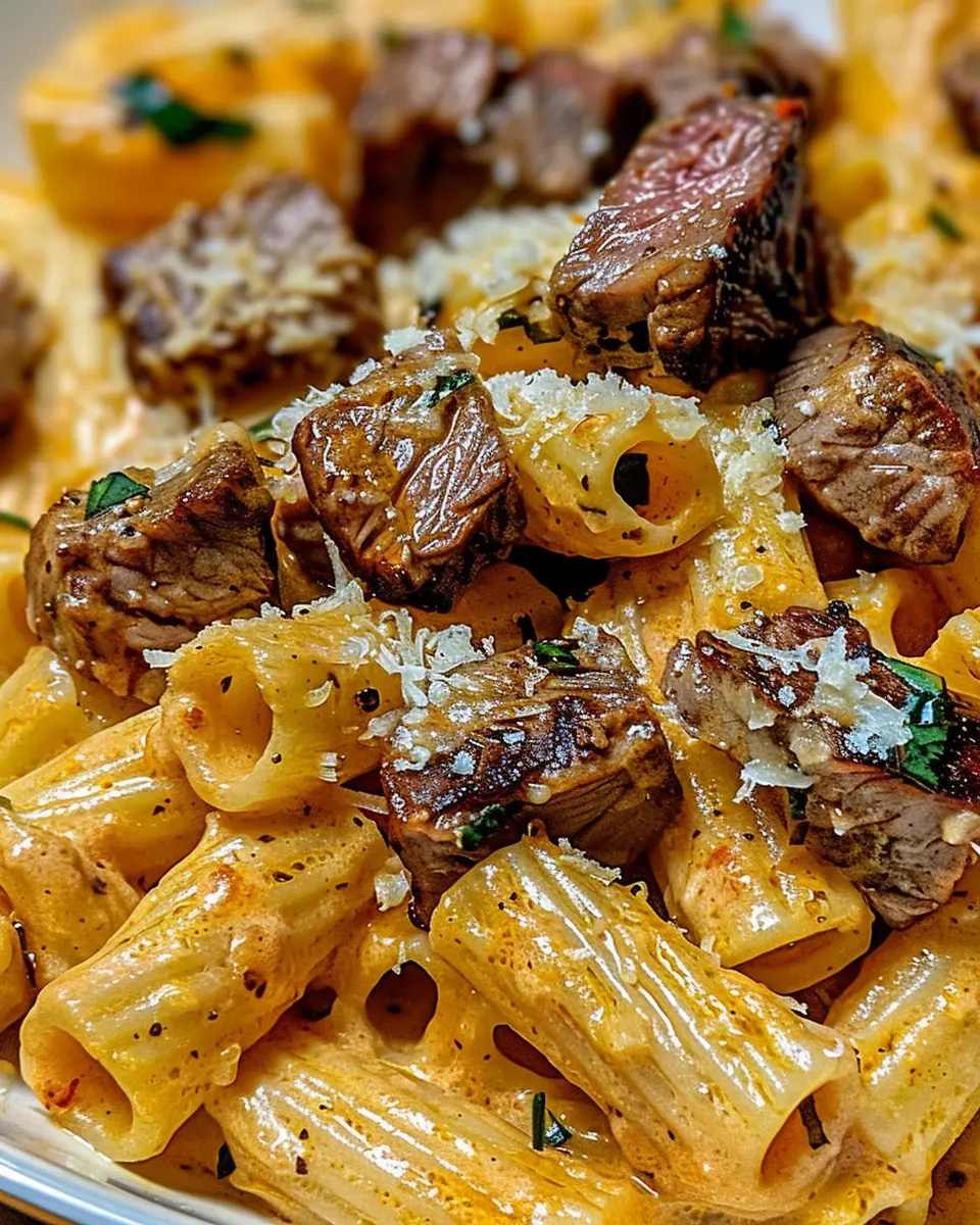 Absolutely! If you’re aiming for a lighter take on Cajun steak tips in cheesy rigatoni Parmesan sauce, consider using whole wheat pasta or even zucchini noodles for a veggie-friendly twist. You can also swap out traditional cheese for a reduced-fat variety to cut down on calories without losing that delightful creaminess. Pairing with a side of fresh sautéed veggies can also lend a lighter touch while still satisfying your hunger.
