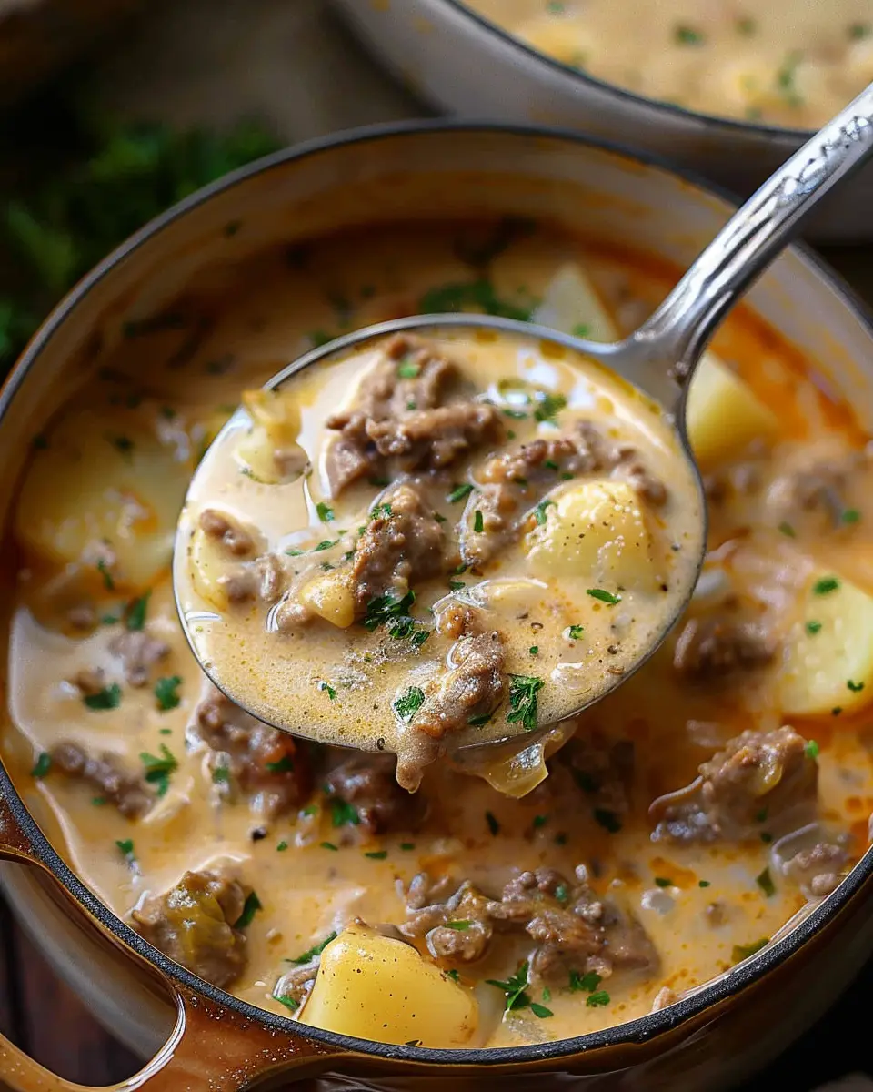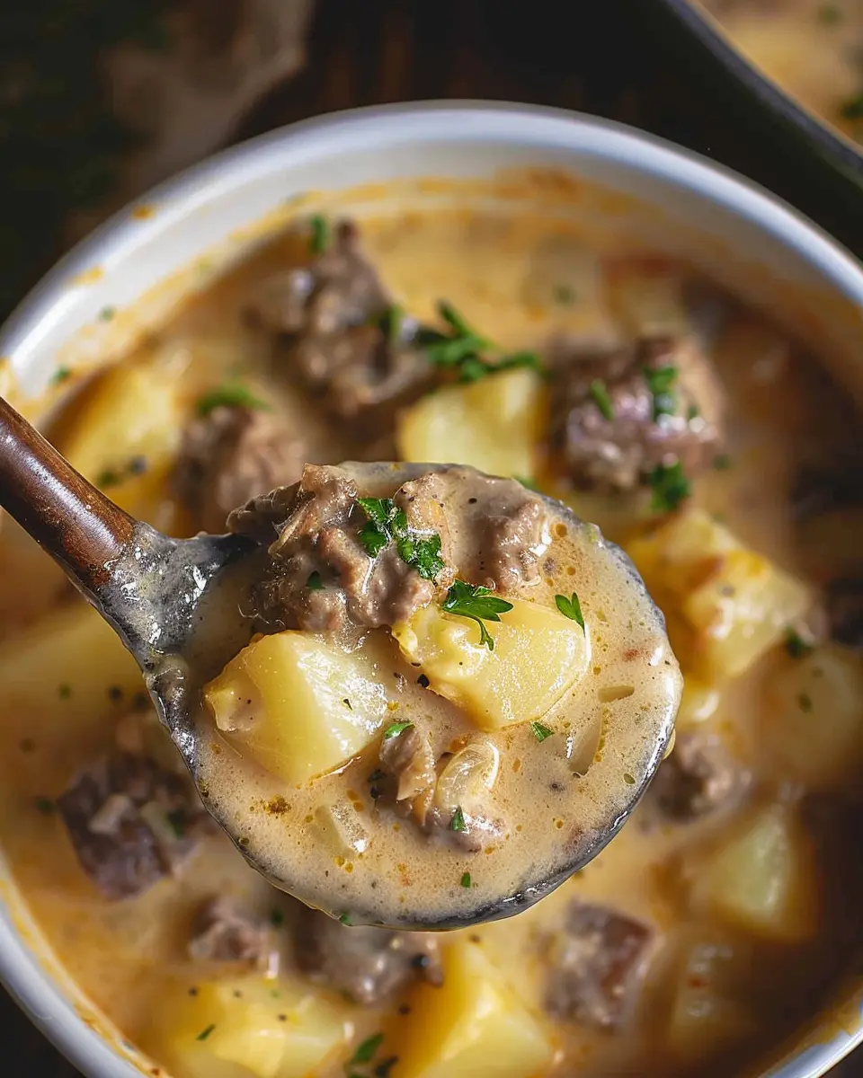 PrintCheesy Beef and Potato Soup: The Easy Comfort Food You’ll Love