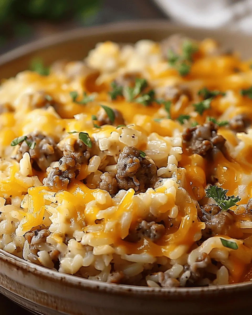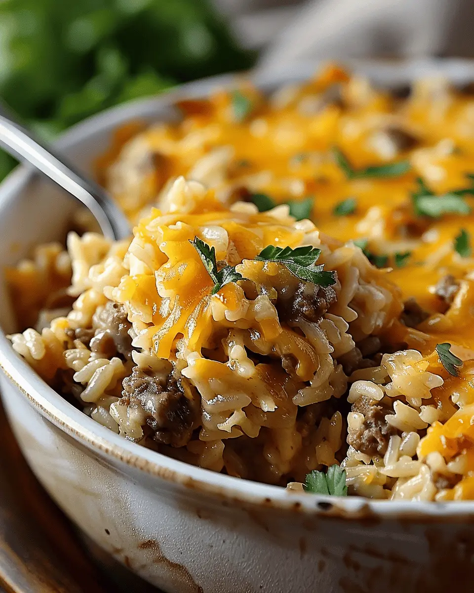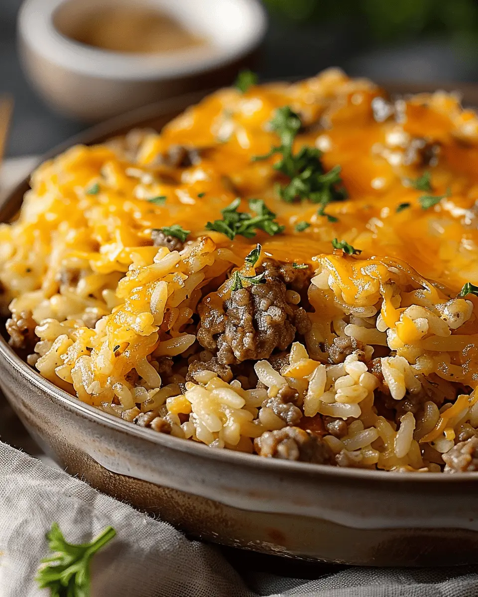 A delicious and comforting casserole that combines savory ground beef, fluffy rice, and melted cheese, perfect for family dinners.