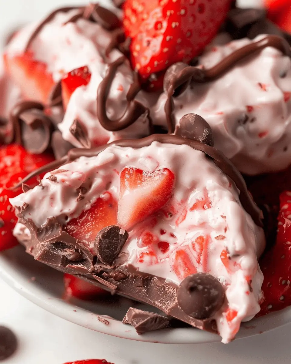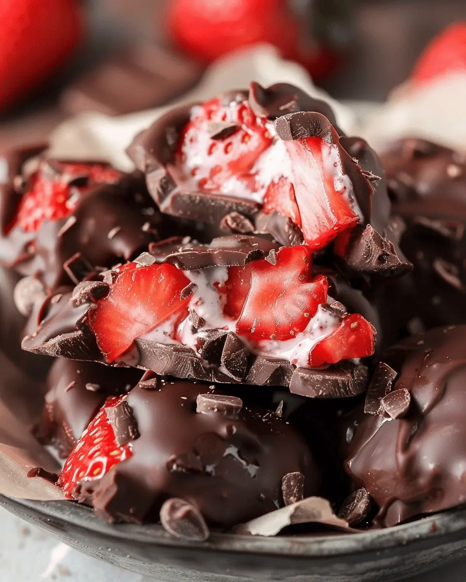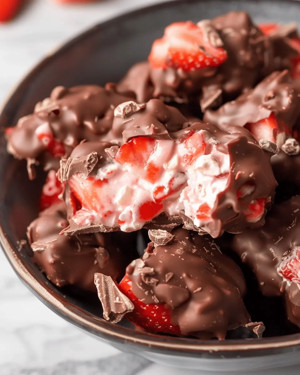 Enjoy these Chocolate Strawberry Yogurt Clusters, a delightful treat that combines rich chocolate and fresh strawberries in a creamy yogurt base.