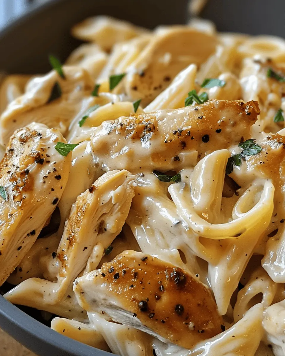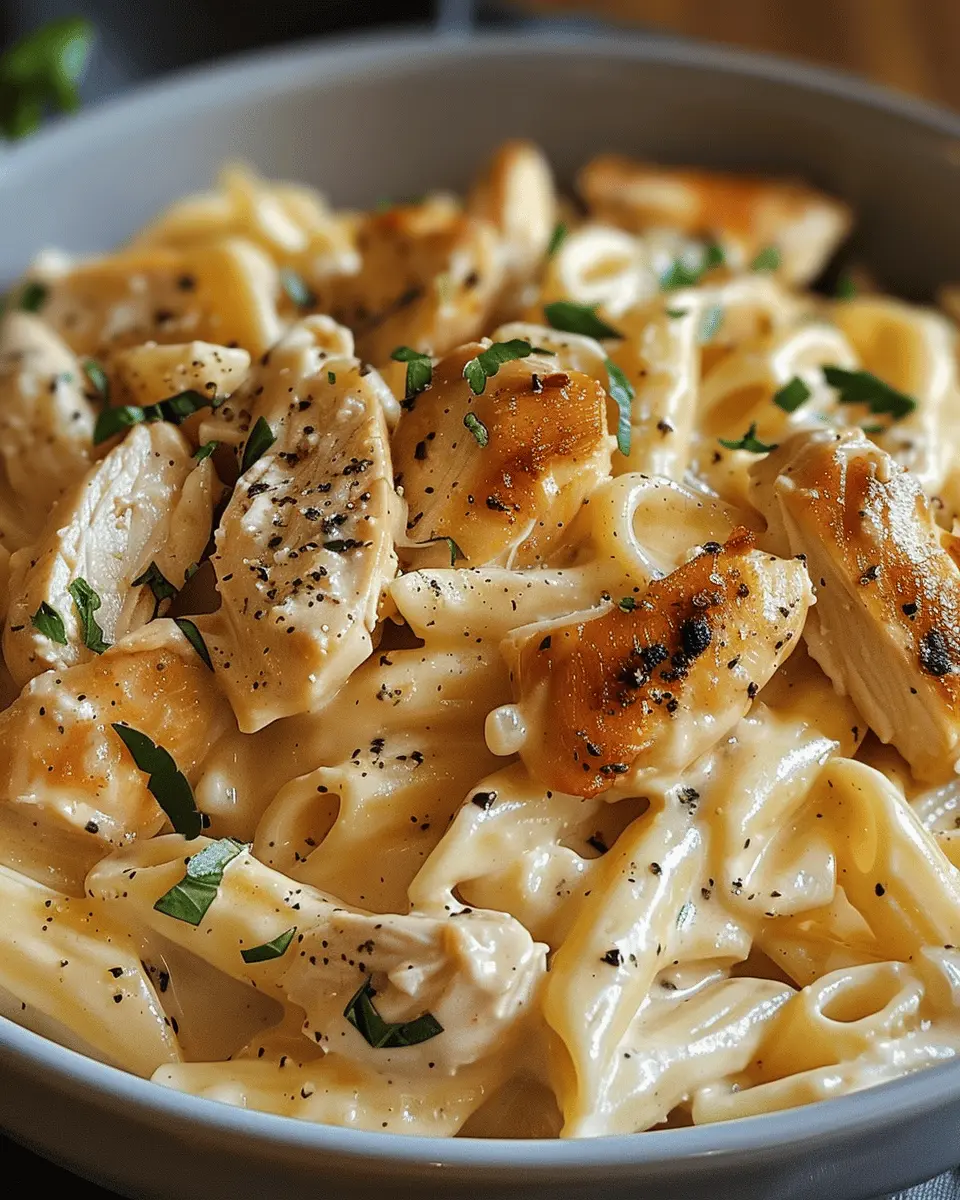 - Mix It Up: Add the drained pasta and the sliced chicken directly to the sauce. Gently toss everything together to ensure each noodle is coated in that rich, creamy goodness.