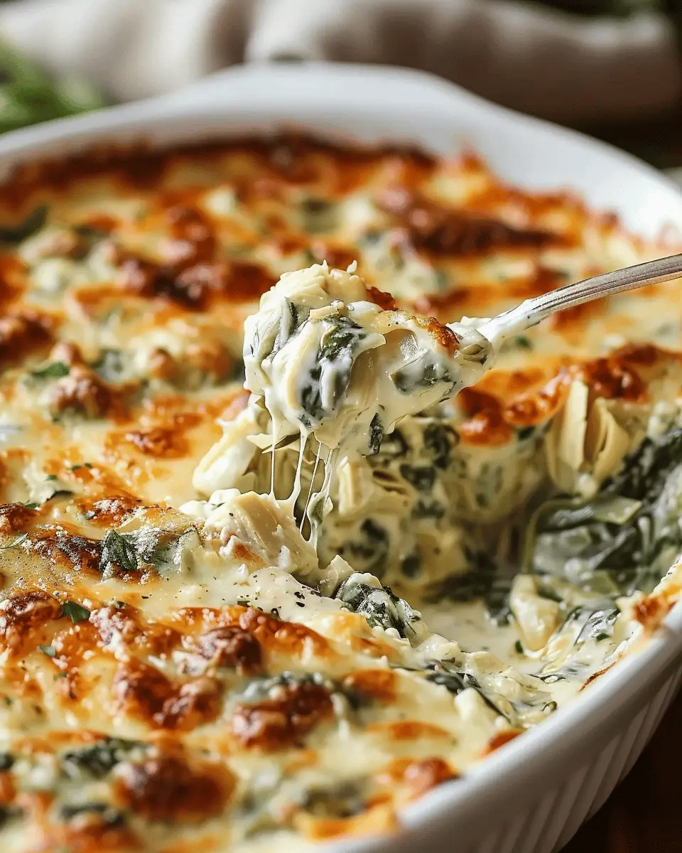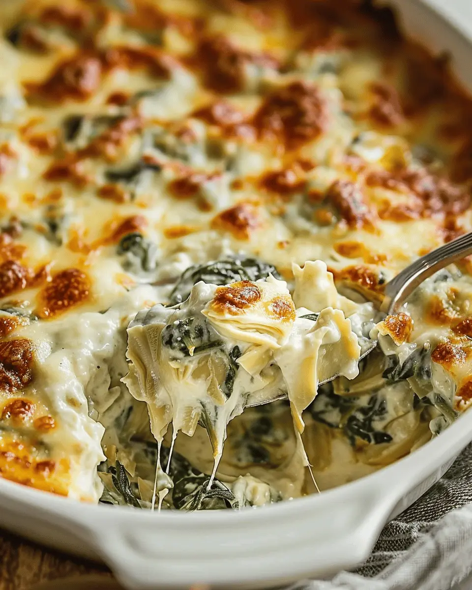 Absolutely! One of the best aspects of this Creamy Spinach Artichoke Dip Recipe is its make-ahead potential. Prepare the dip up to a day before your gathering. Simply combine all the ingredients, place it in a baking dish, and store it in the refrigerator. When you’re ready to serve, just pop it in the oven for about 20-30 minutes until bubbly and golden. This not only saves you time but allows the flavors to meld beautifully.