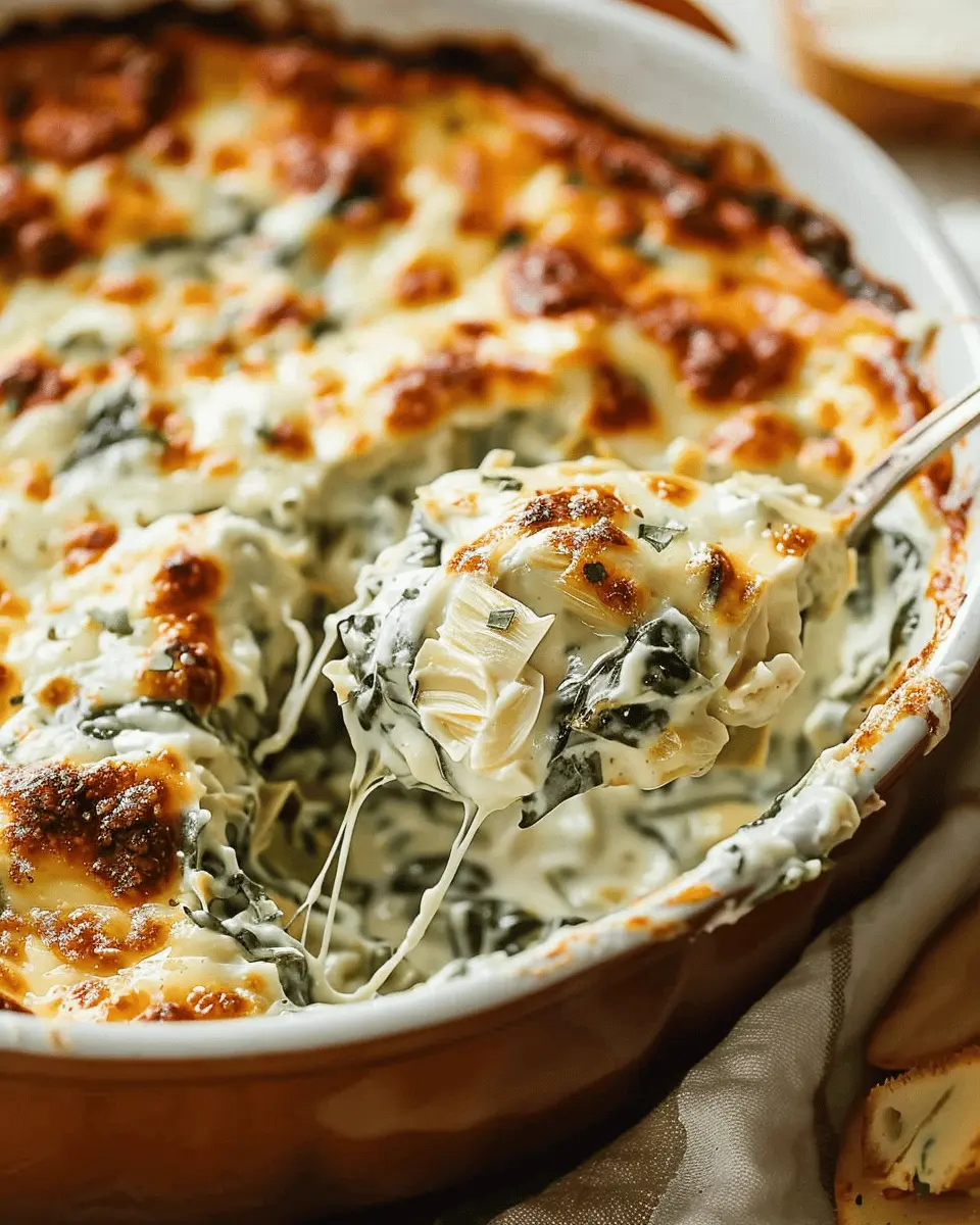 In summary, this Creamy Spinach Artichoke Dip Recipe is perfect for every event, from casual game nights to sophisticated gatherings. With its smooth texture and combination of spinach, artichokes, and a cheesy blend, it’s a guaranteed crowd-pleaser. Whether you’re pairing it with crispy pita chips or fresh veggie sticks, this dip is as versatile as it is delicious.