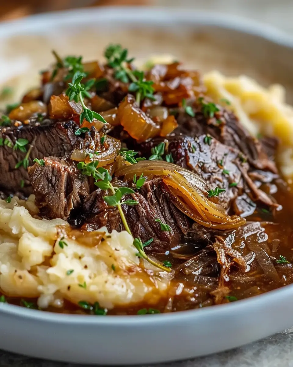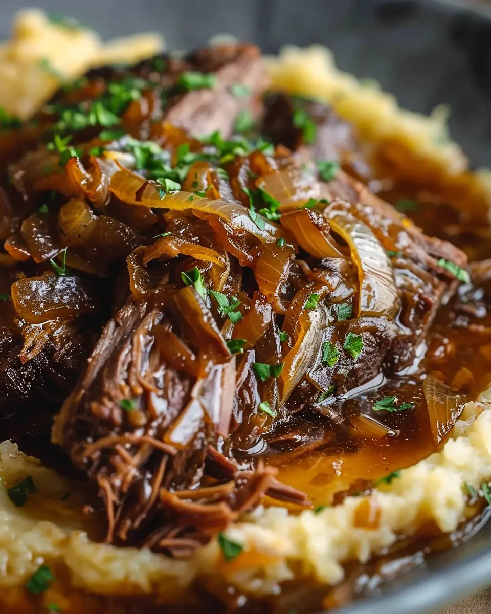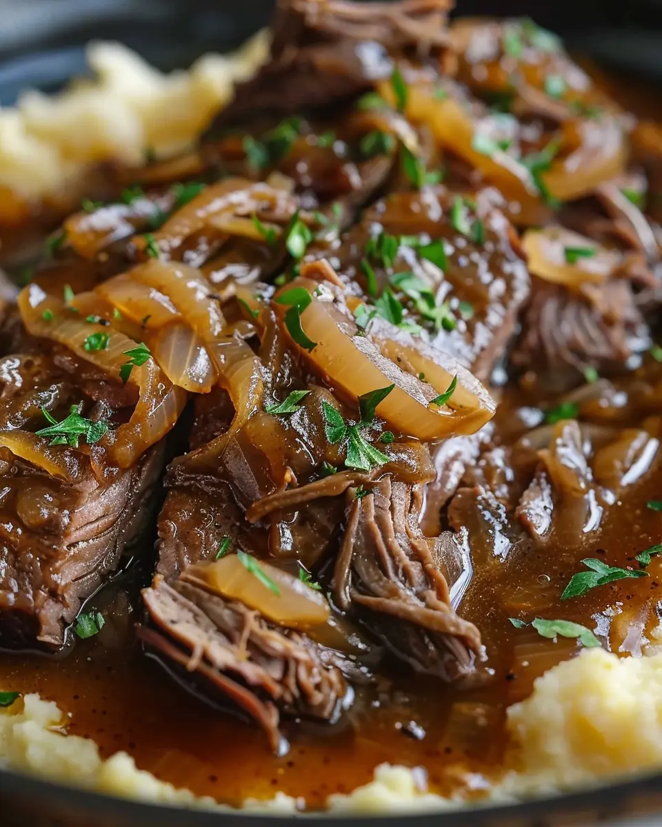 A delicious and easy recipe for making French onion pot roast in a crock pot, perfect for cozy dinners.
