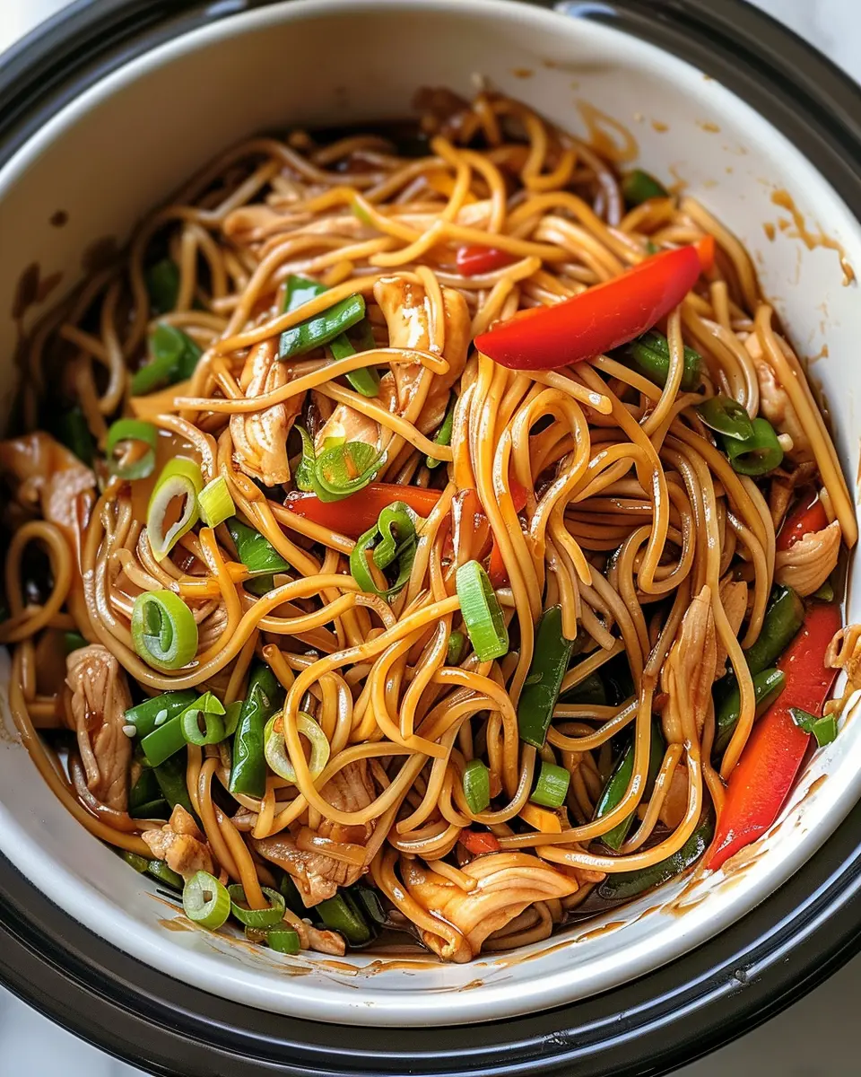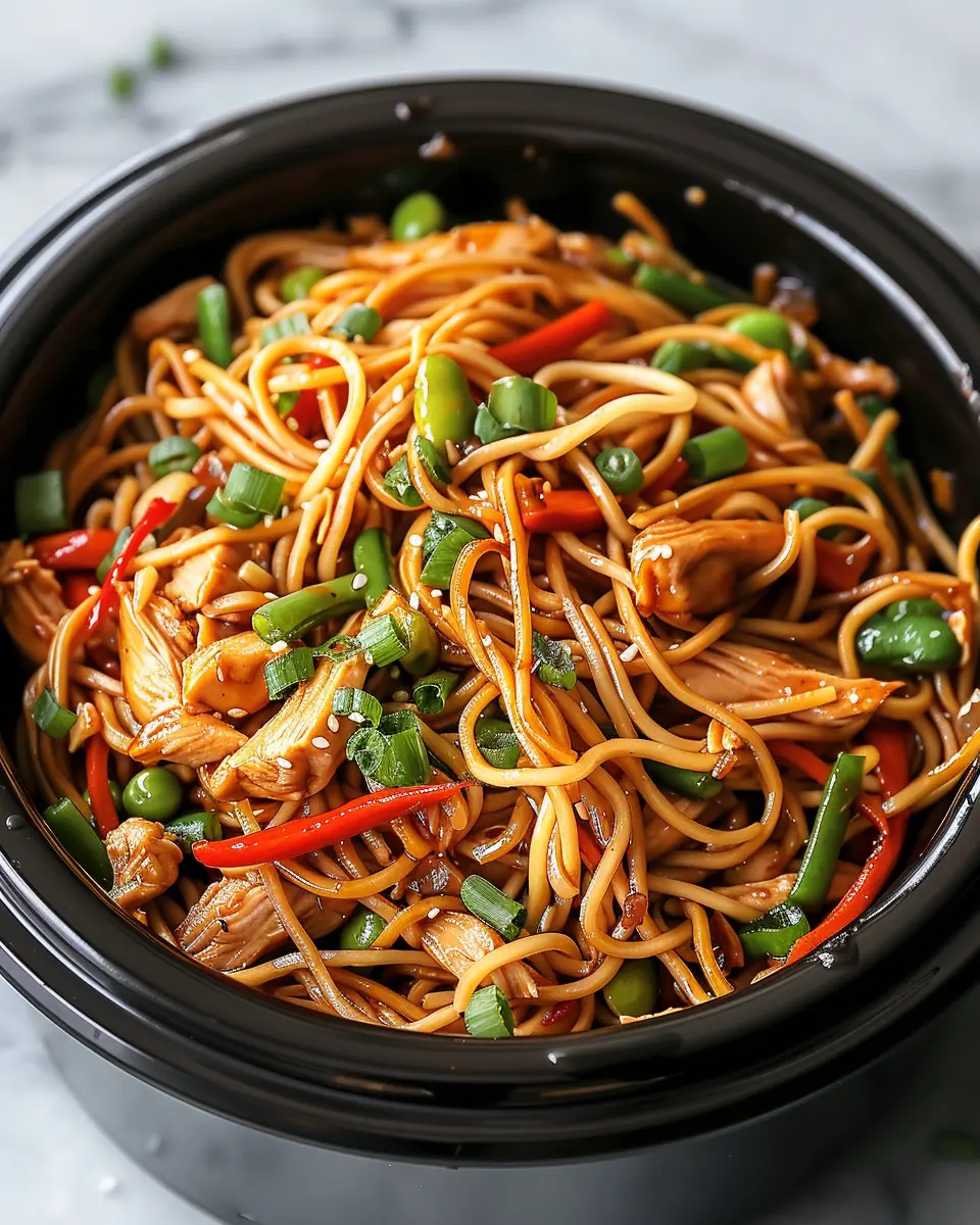 A delicious and easy Crockpot Chicken Lo Mein recipe that combines tender chicken, vibrant vegetables, and flavorful noodles all in one pot.