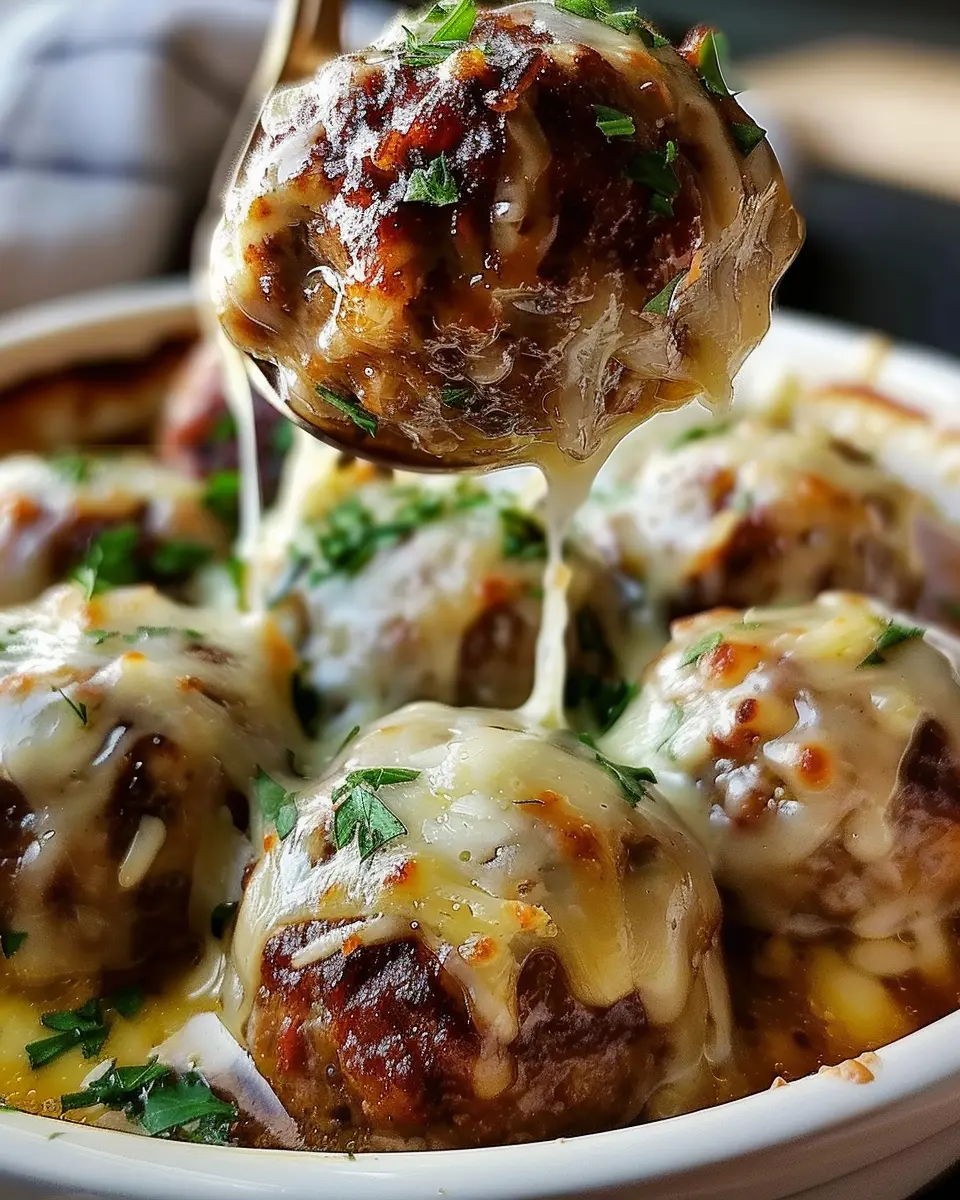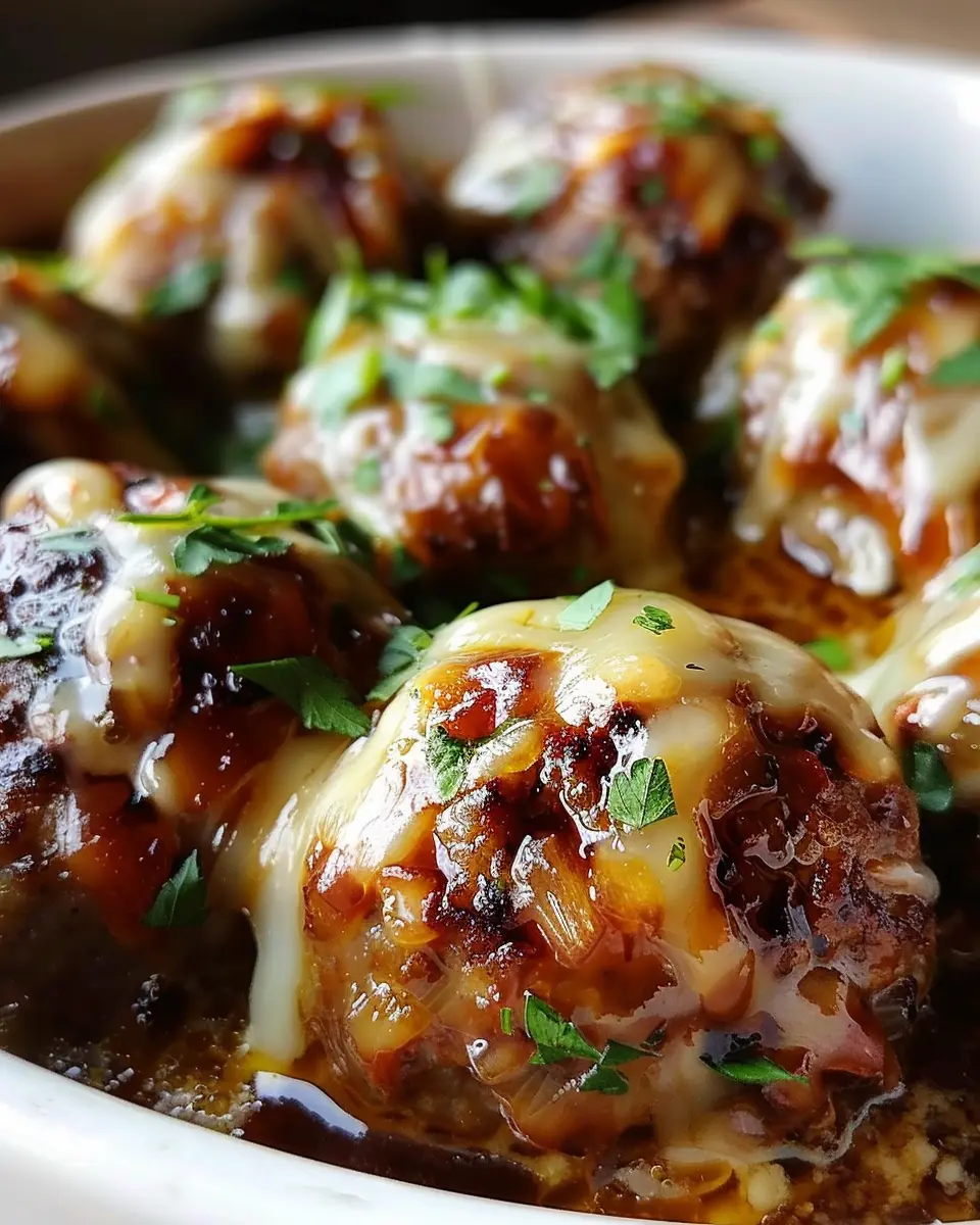 PrintCrockpot French Onion Meatballs: 5 Easy Steps to Comfort Bliss