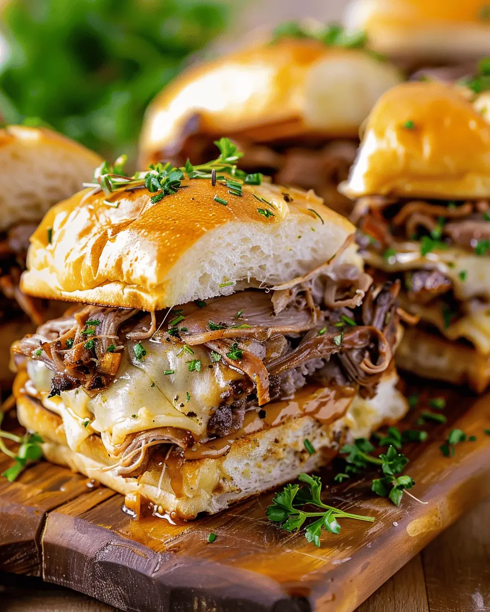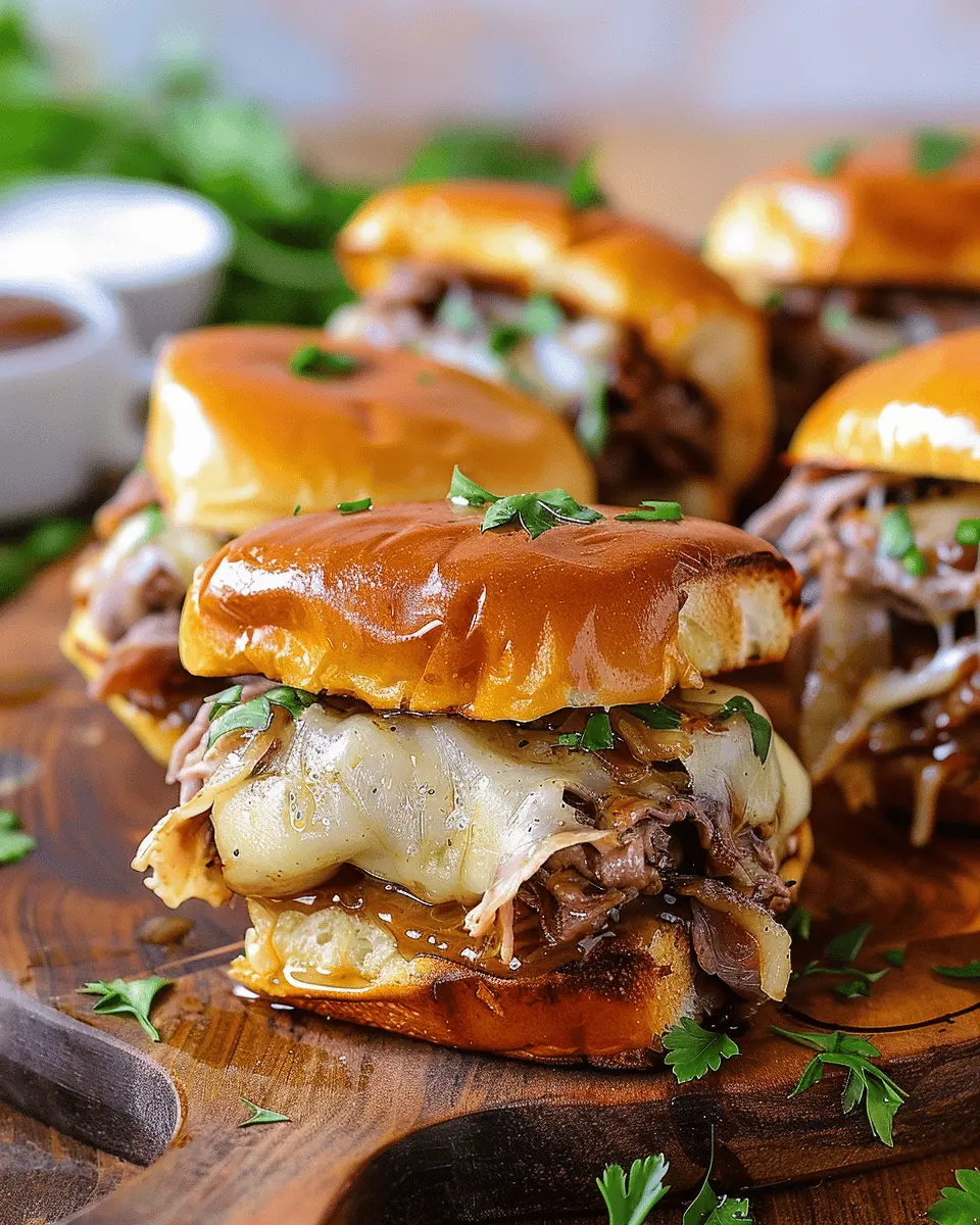 Don’t forget to serve your sliders with a warm dipping sauce. A homemade au jus is traditional, but feel free to experiment with variations like a spicy garlic aioli or a creamy horseradish sauce for an extra kick. Your guests will love personalizing their sliders!