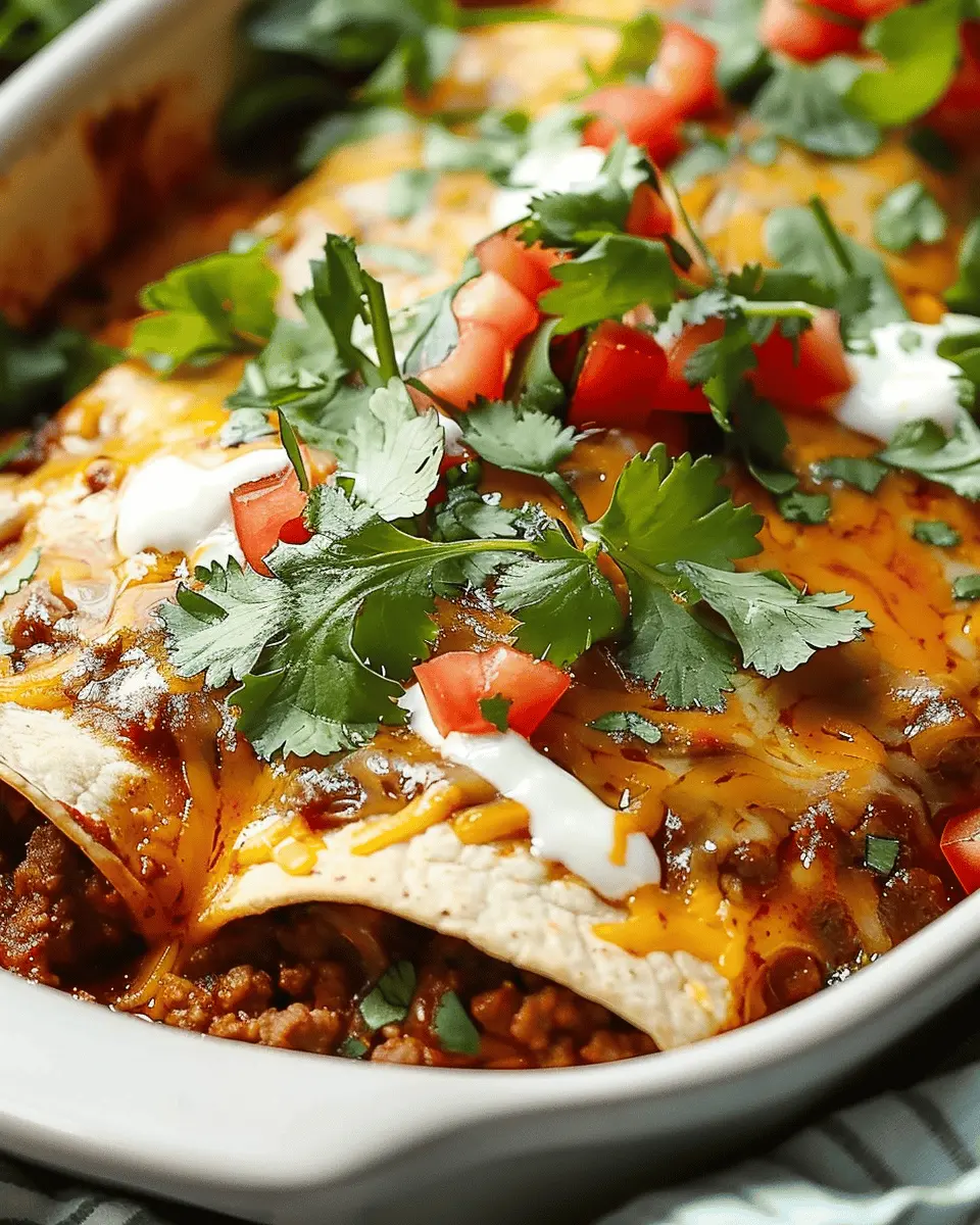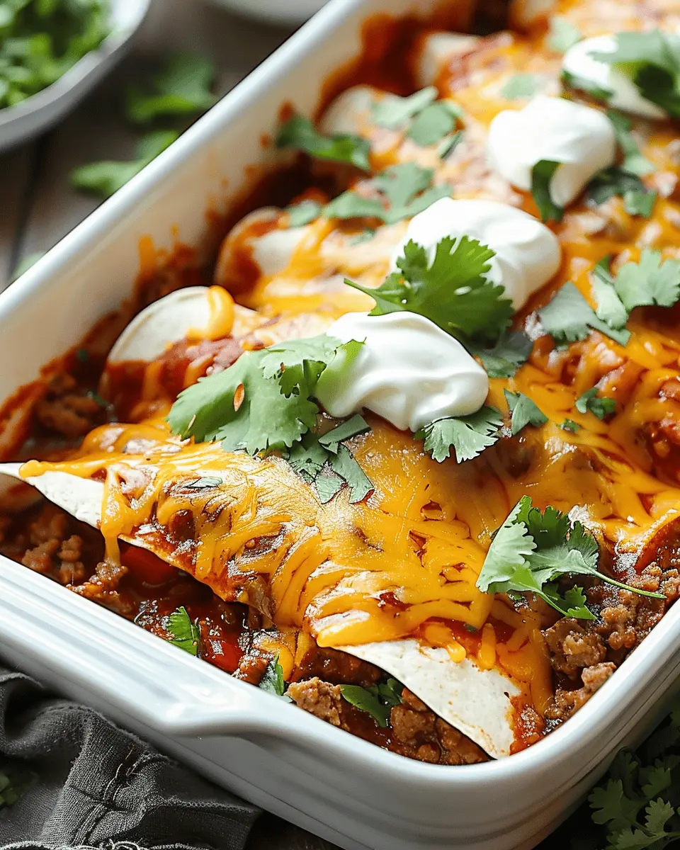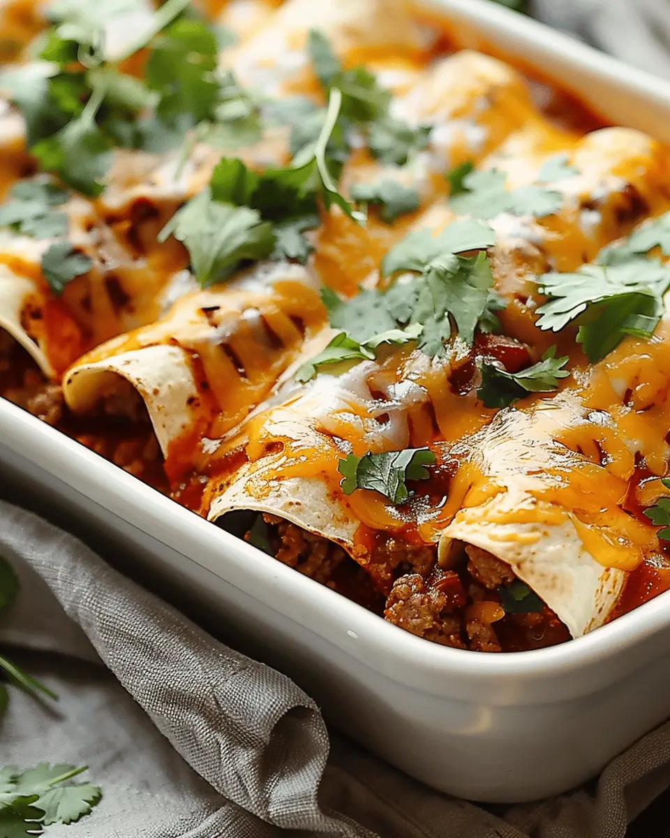 One of the best things about enchiladas is how adaptable they are. Whether you’re craving a spicy kick or a milder flavor, you can easily tweak the ingredients to suit your taste. You can swap ground beef for chicken or even go vegetarian with black beans or lentils. Plus, toppings like sour cream, avocados, or fresh cilantro can elevate the dish to another level. This flexibility makes them ideal for any occasion!