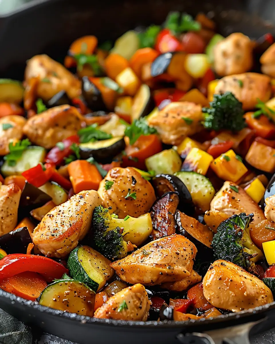 The healthy chicken and vegetables skillet is not just a delightful dish; it’s a powerhouse of nutrition! Packed with lean protein from chicken, essential vitamins from vibrant veggies, and wholesome flavors, this meal is perfect for busy young professionals like you. Quick to prepare, it’s the ideal solution for a nutritious dinner after a hectic day. Plus, by using alternatives like turkey bacon and chicken ham, you can enjoy guilt-free indulgence while keeping calories in check.