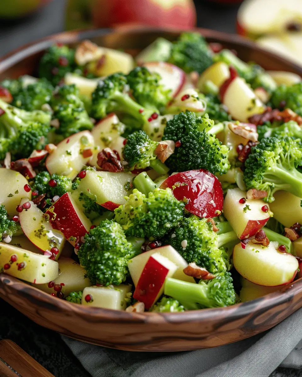 Broccoli is not just a reliable vegetable; it’s a nutrient powerhouse rich in vitamins K, C, A, and plenty of fiber. According to the USDA, a one-cup serving of raw broccoli packs in over 100% of your daily vitamin K, making it a fantastic choice for healthy eating. Pair that with Honeycrisp apples, which boast a high water content and natural sugars, and you have a salad that is both invigorating and satisfying.