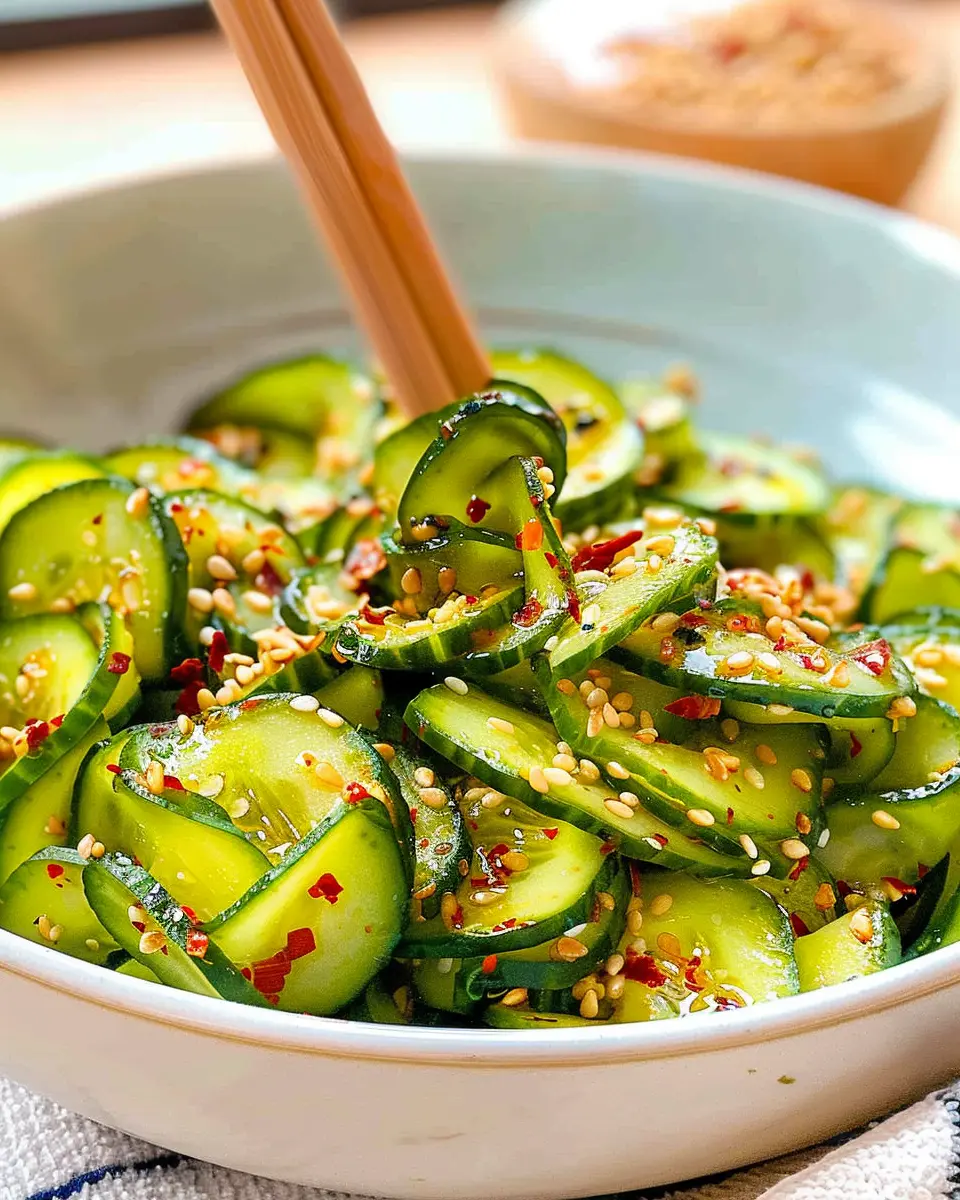 - Dash of sesame oil: Just a few drops will enhance the nutty aroma that pairs beautifully with cucumbers.