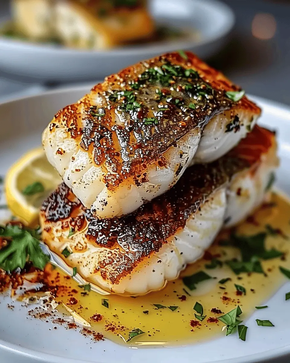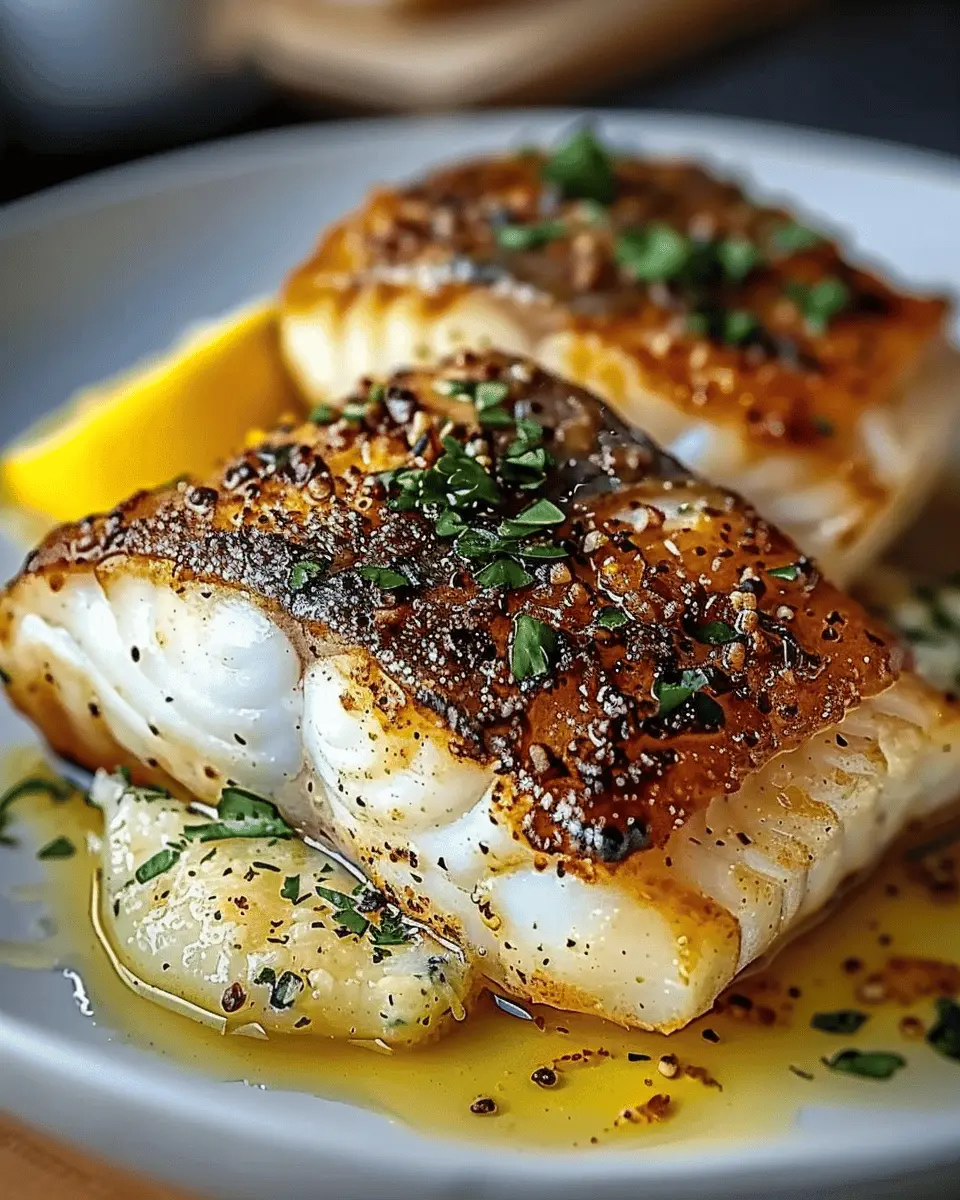 PrintLemon Garlic Butter Cod: Easy Recipe for Crispy Skin Lovers