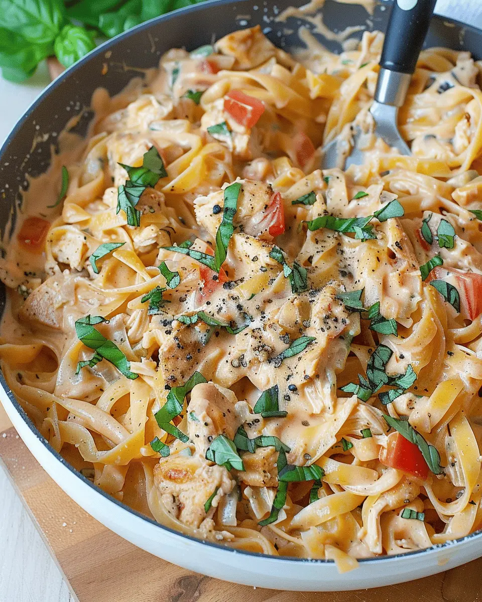 • Create the Sauce: Stir in the chicken broth and heavy cream, letting it simmer for a few minutes. You can also add a spoonful of cream cheese for extra creaminess. Don’t forget to incorporate fresh spinach if you like a little greenery in your meal! It cooks down beautifully and adds a nice texture.