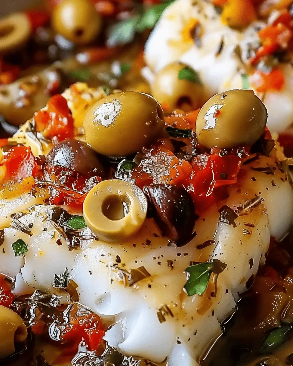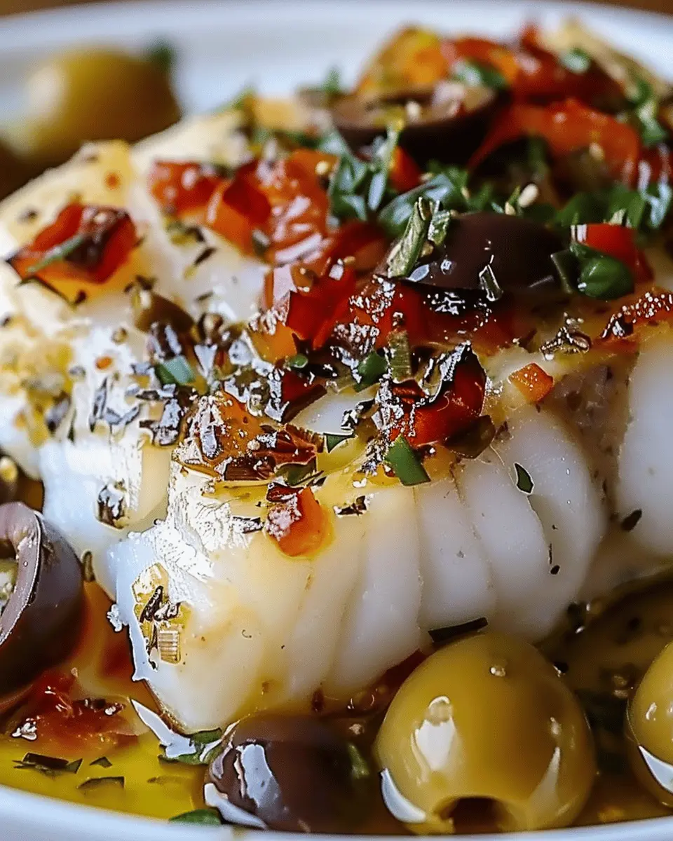 PrintMediterranean Baked Cod with Olives: Easy, Flavorful Delight