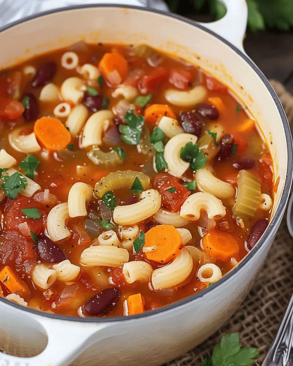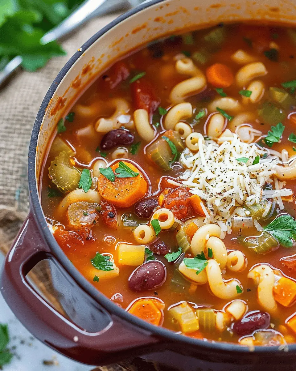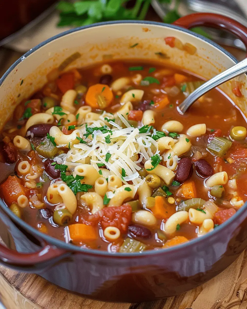 When enjoying your minestrone soup, consider pairing it with a warm, crusty Italian bread or some cheesy garlic knots for the ultimate comfort food experience. Adding a sprinkle of fresh Parmesan cheese can elevate the flavors, while a drizzle of good quality olive oil enhances richness. You might also want to toss in some fresh basil or parsley for a burst of color and freshness. A light side salad with tangy vinaigrette can balance the heartiness of the soup beautifully, making for a well-rounded meal.