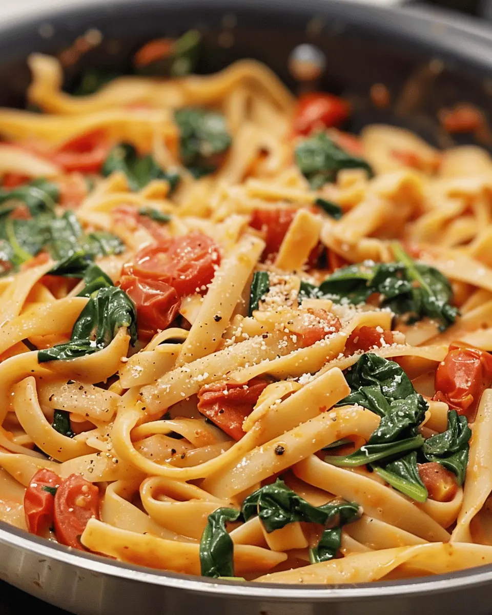 Keywords: One-Pot Spinach Tomato Pasta, easy pasta recipe, comfort food