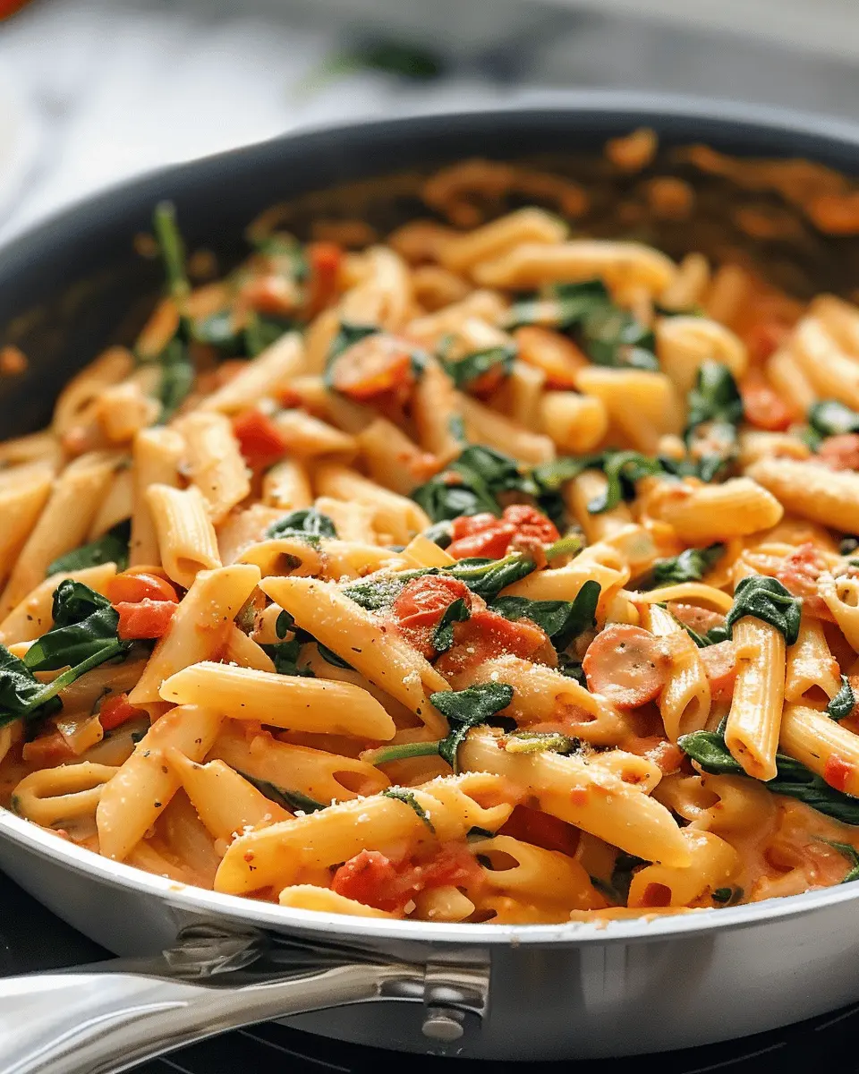 Step-by-step preparation of One-Pot Spinach Tomato Pasta