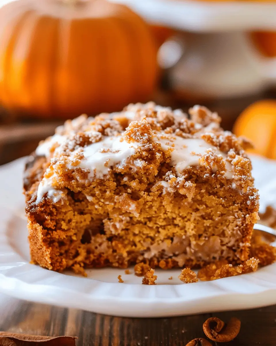 A delicious pumpkin coffee cake that combines the flavors of fall with a moist texture and a streusel topping.