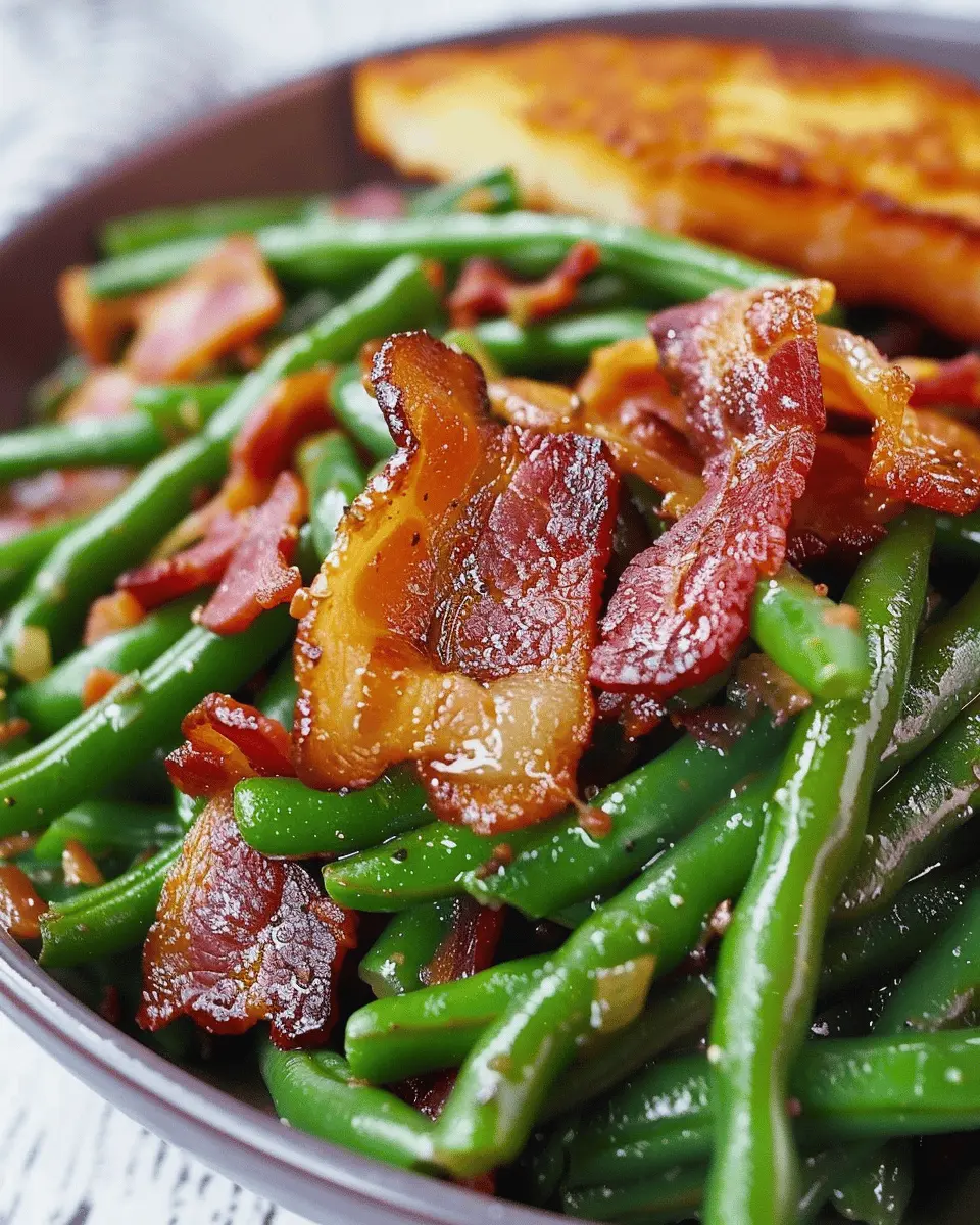 A delightful and quick dish combining turkey bacon and fresh green beans, perfect for a southern-inspired meal.