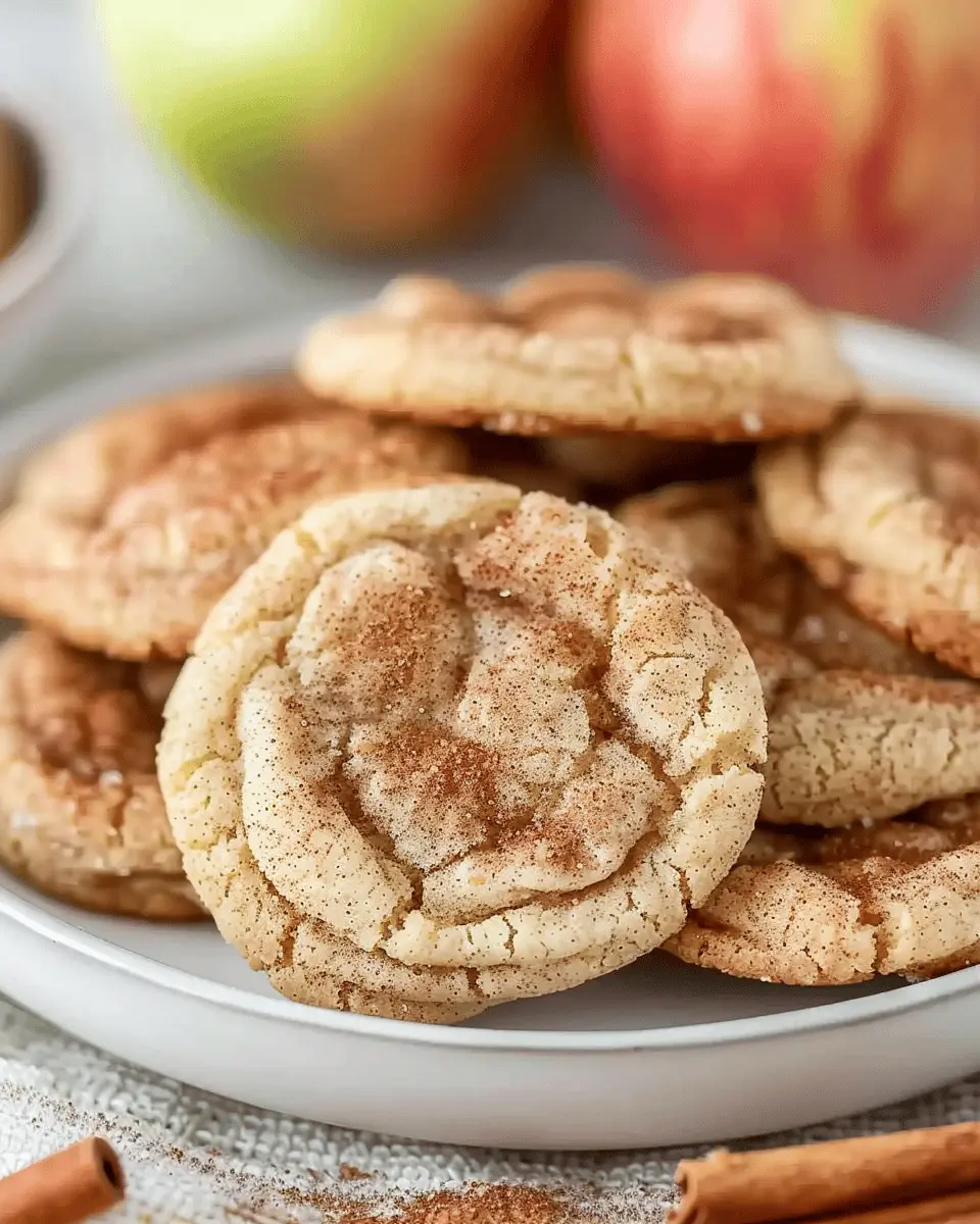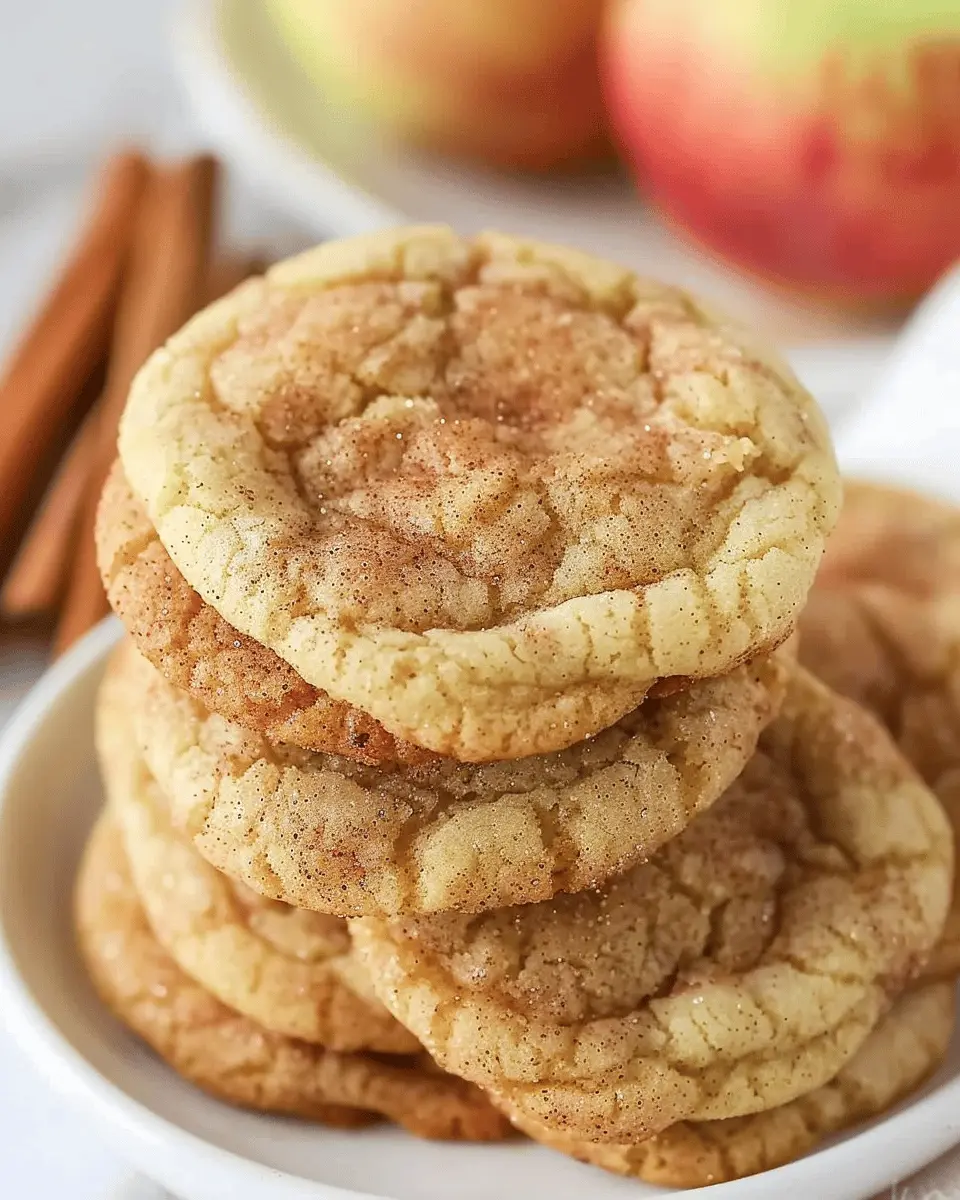 Indulge in the warm, cozy flavors of spiced apple and cinnamon with every bite of these delightful snickerdoodle cookies.