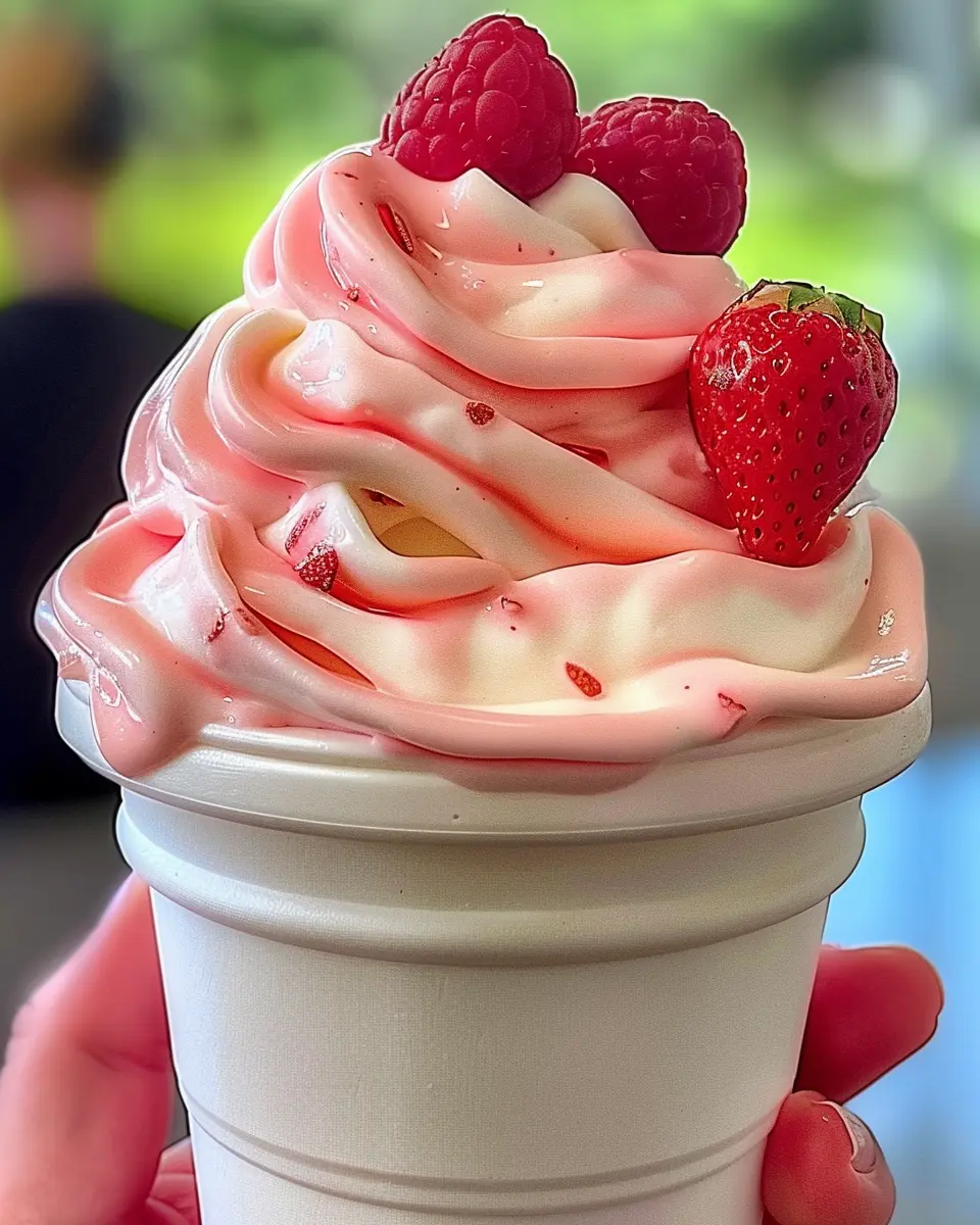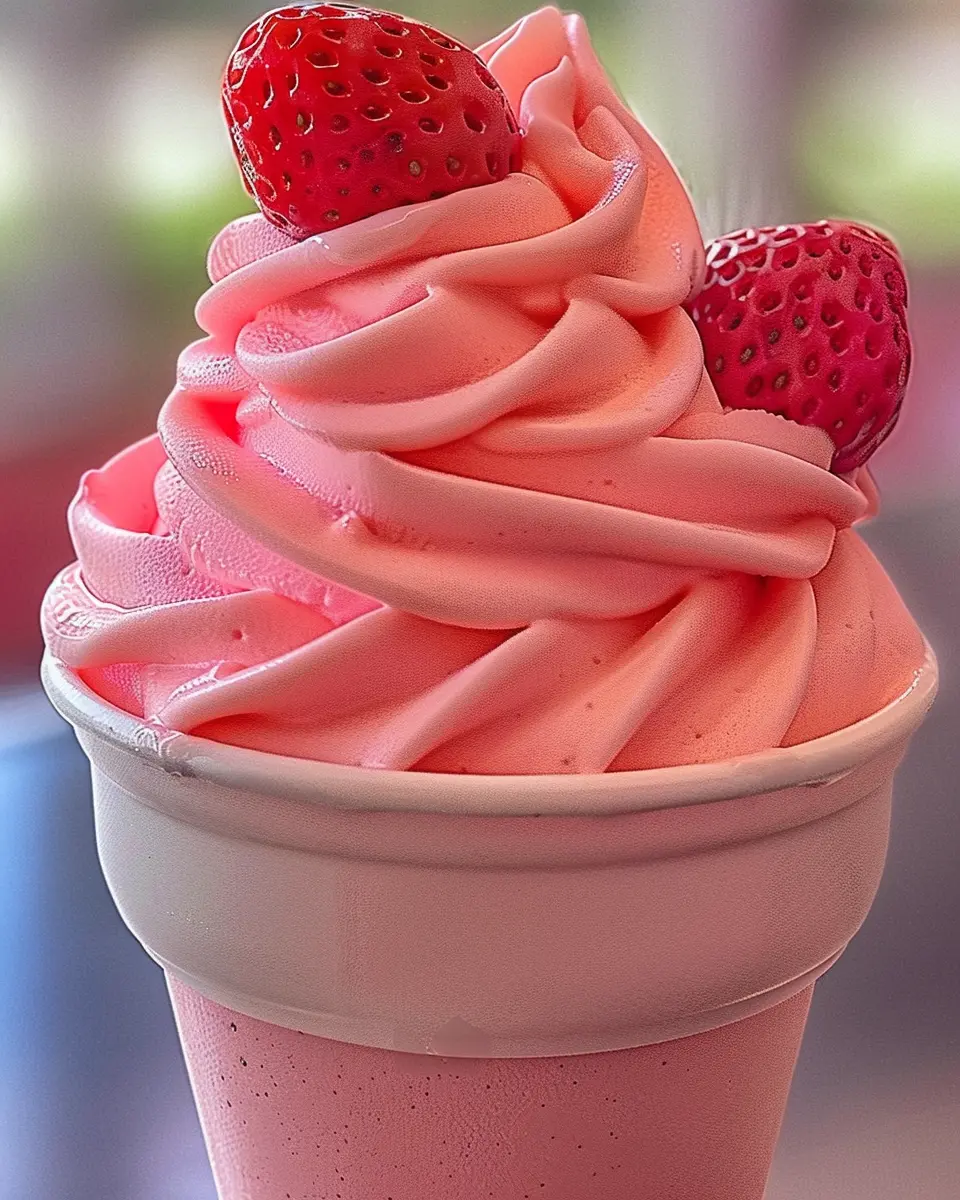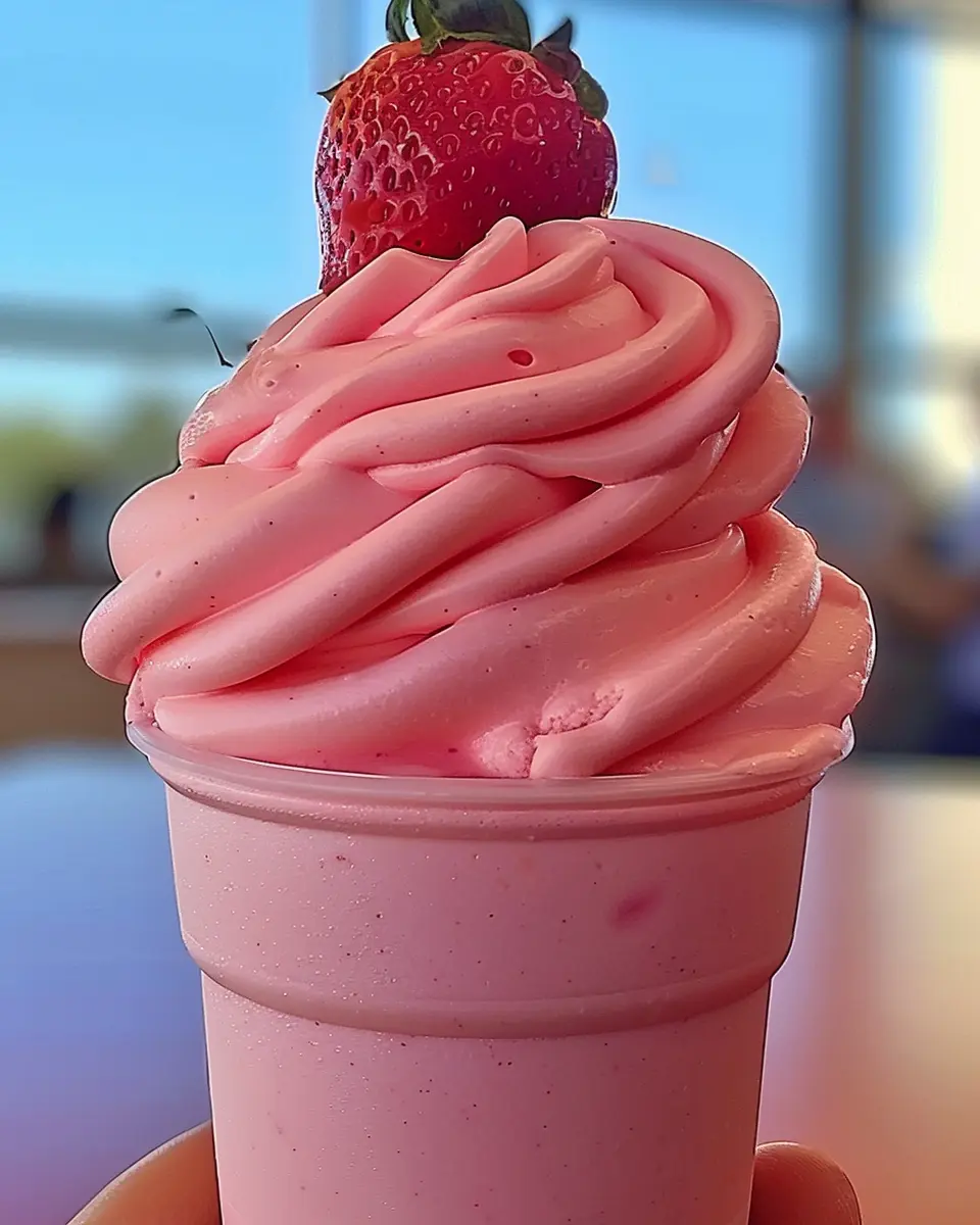 This fruity, creamy treat is much more than just a dessert; it’s a burst of nostalgia that transports you back to warm sunny days at the beach or family vacations at theme parks. With its vibrant pink hue and delightful strawberry flavor, it’s visually appealing and Instagram-worthy, making it a perfect addition to your latest social media post.