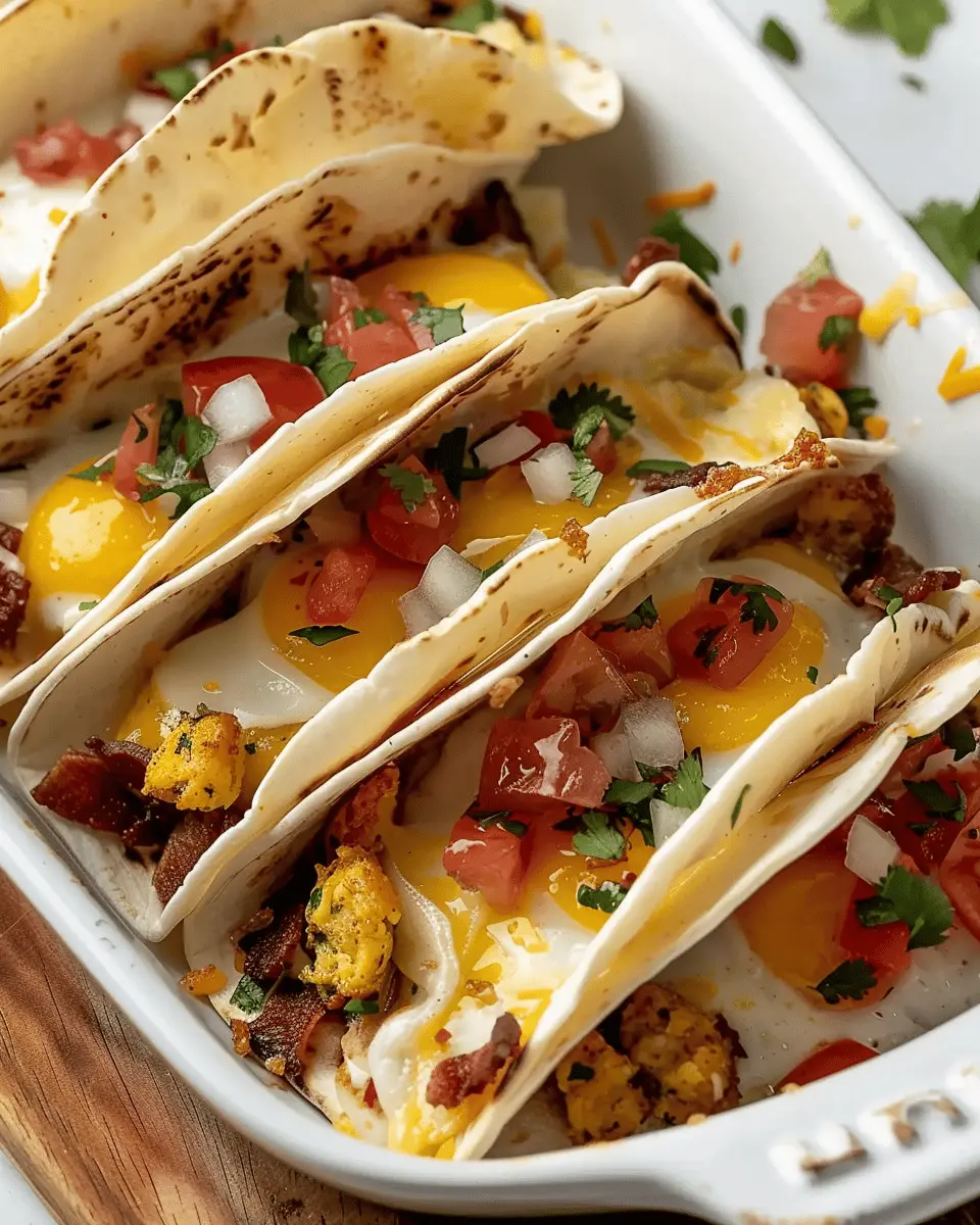 Absolutely! One of the great things about tasty baked breakfast tacos is that they can be prepped in advance. You can assemble the tacos and store them in the refrigerator for up to 24 hours before baking. Just cover them tightly with foil or plastic wrap to keep them fresh. When you’re ready to bake, pop them in the oven from the fridge—just add a few extra minutes to the cooking time to ensure they’re heated through.