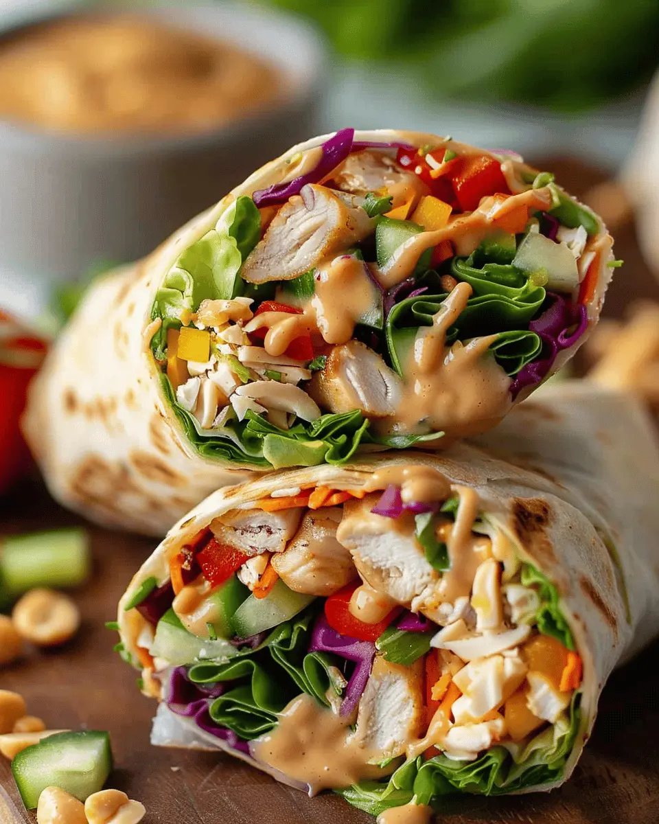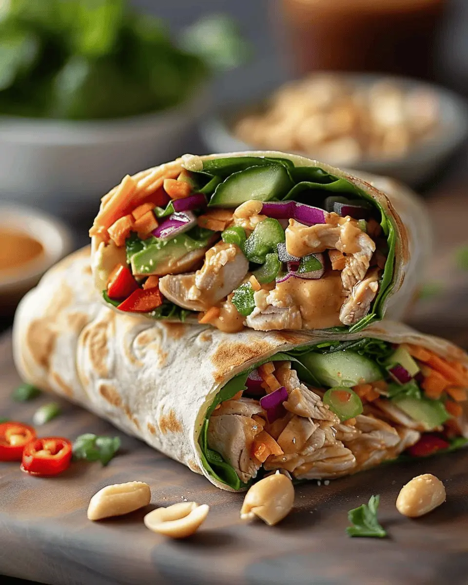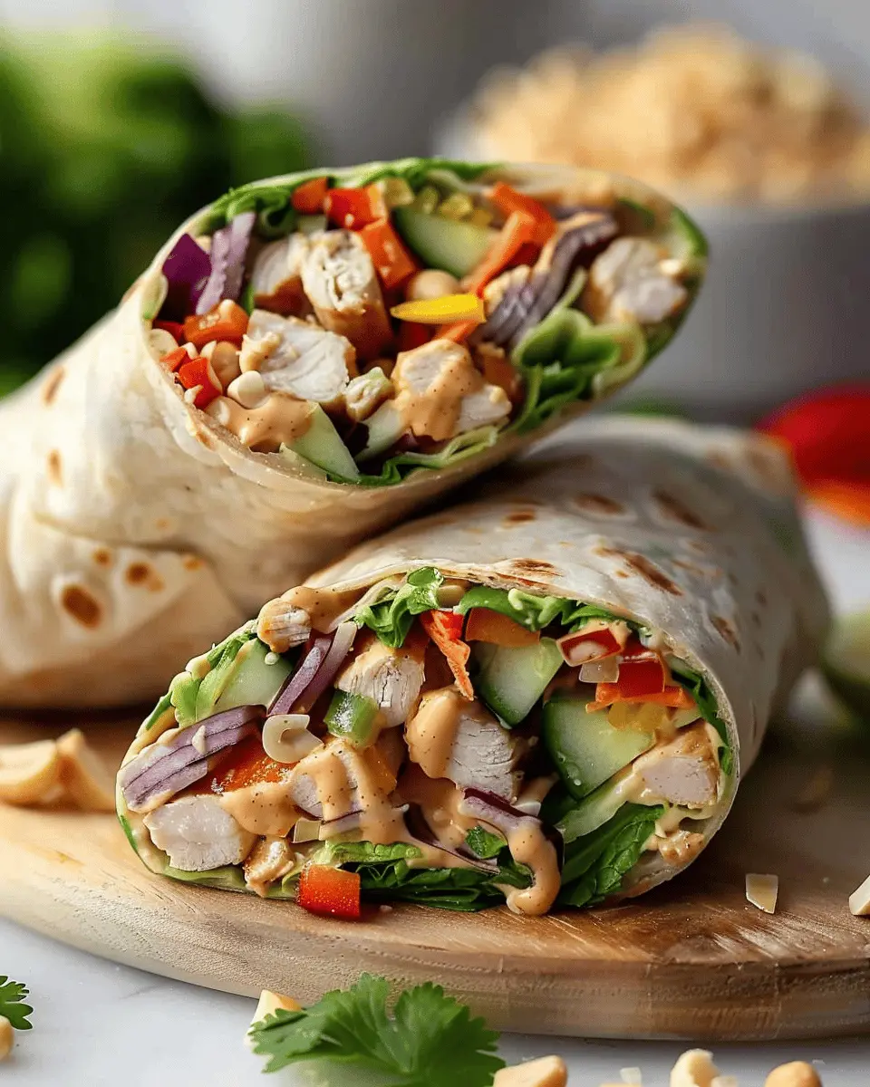 Enjoy the vibrant flavors of Thai cuisine with these easy and delicious peanut chicken wraps, perfect for a quick lunch or a satisfying dinner.